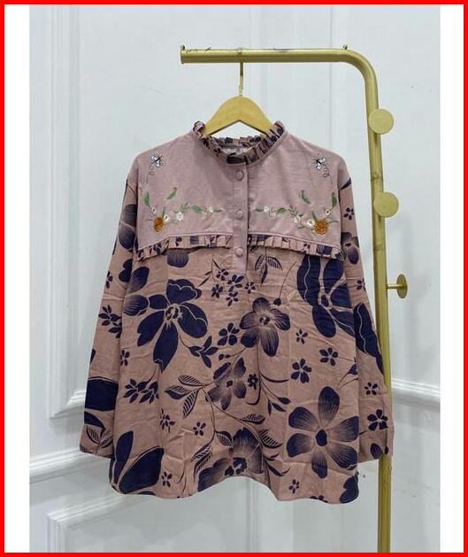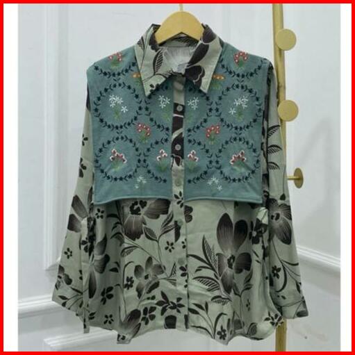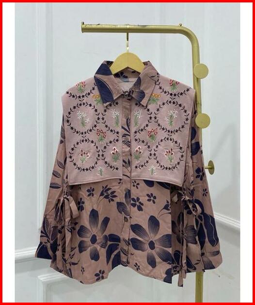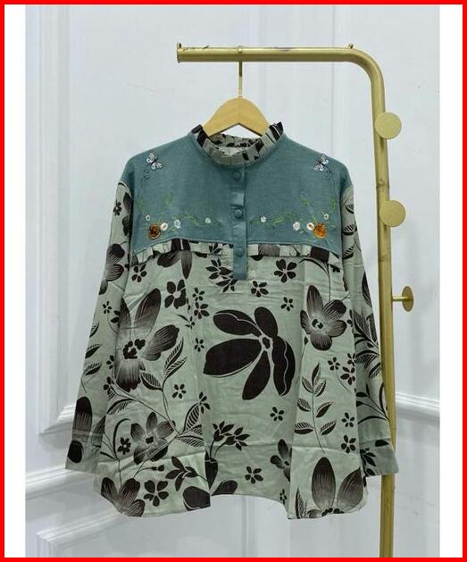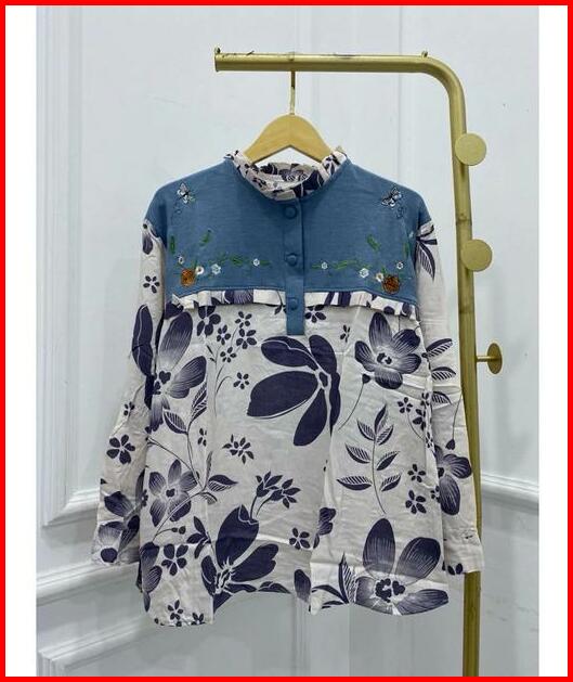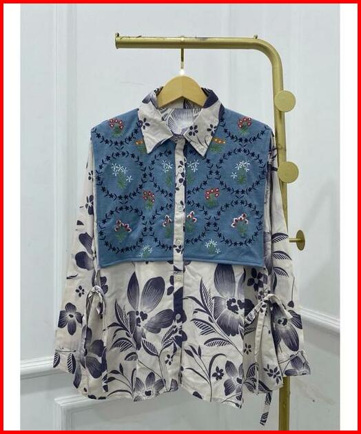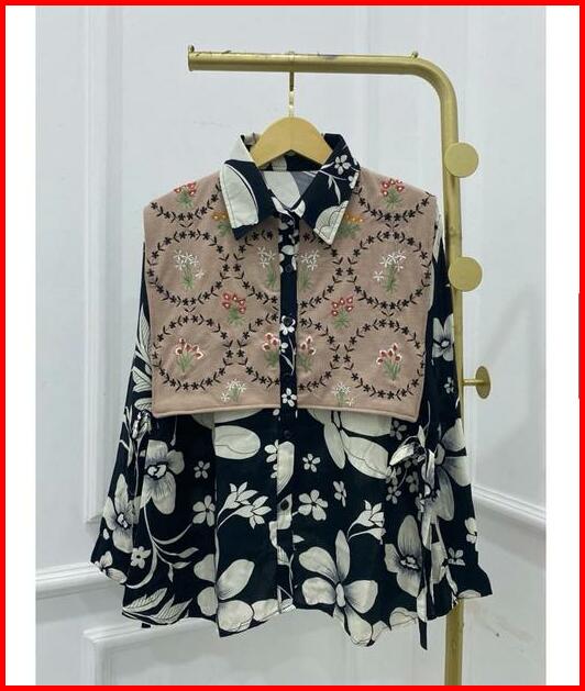 Blouse Bordir Atasan Kemeja Donita Brenda Vest Bordir Knit Mix Rayon Adem Jumbo Bigsize Xxl Kerja Ngantor Kancing