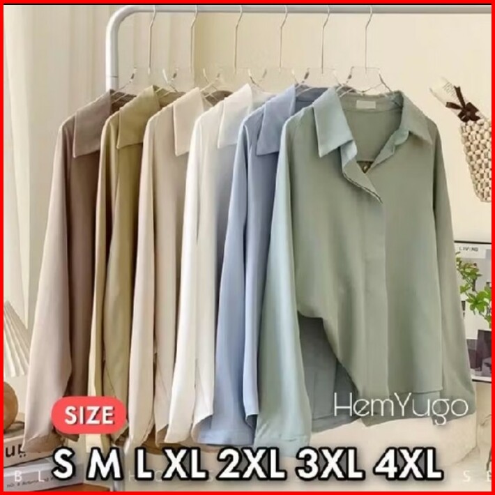 Atasan Wanita Kemeja Kerja Jumbo Hem Yugo Big Size