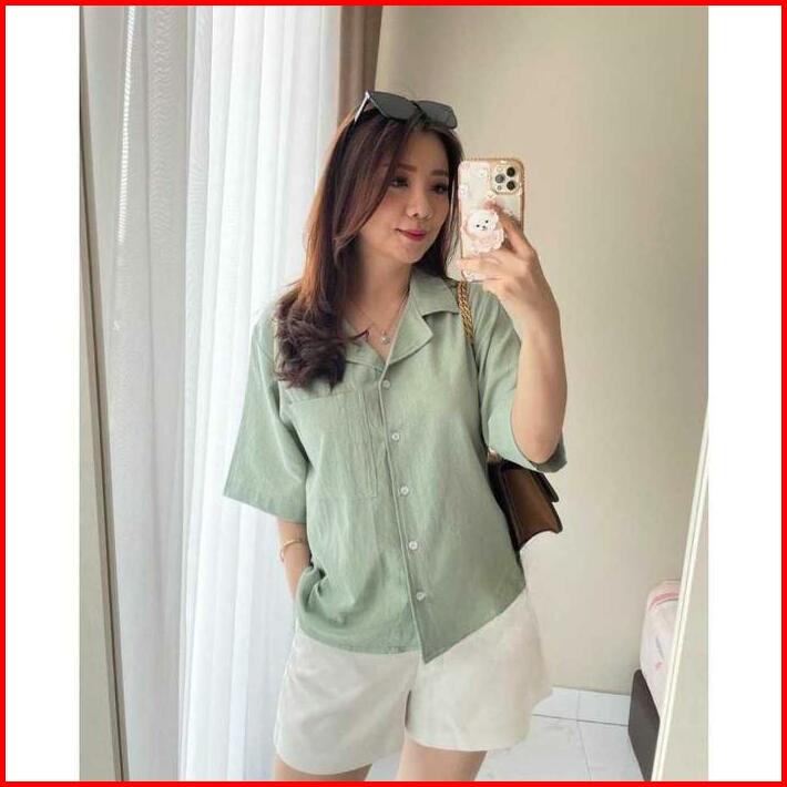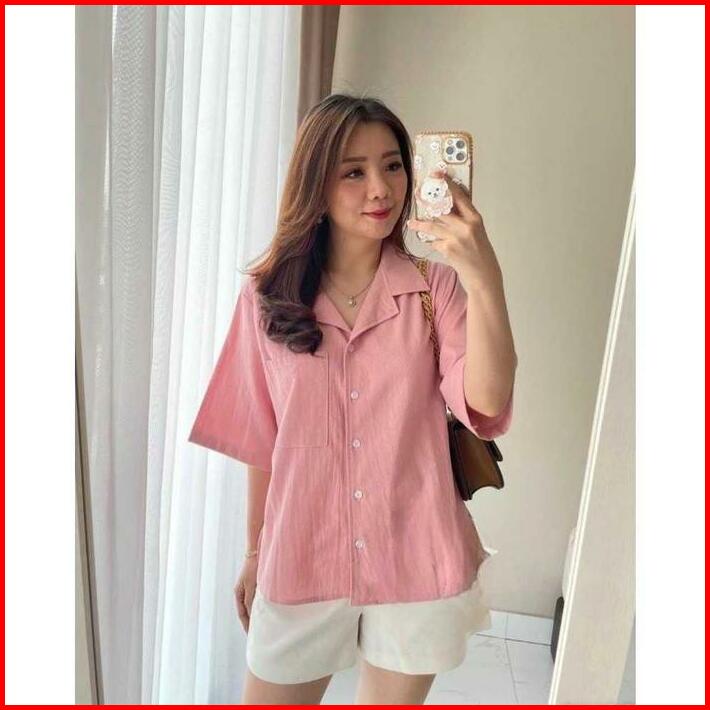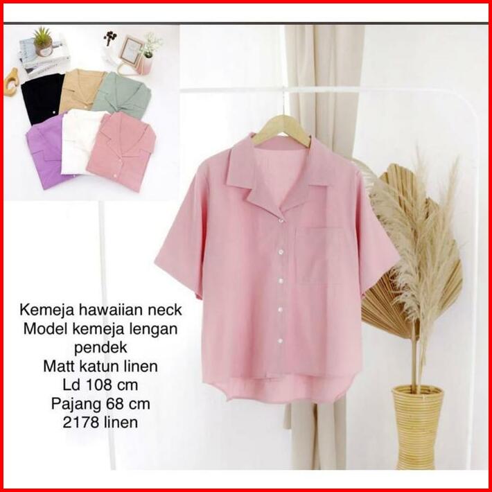 Kemeja Hawaiian Neck Model Kemeja Lengan Pendek Linen Premium 2178