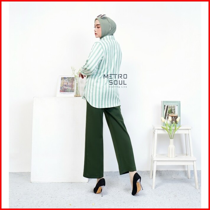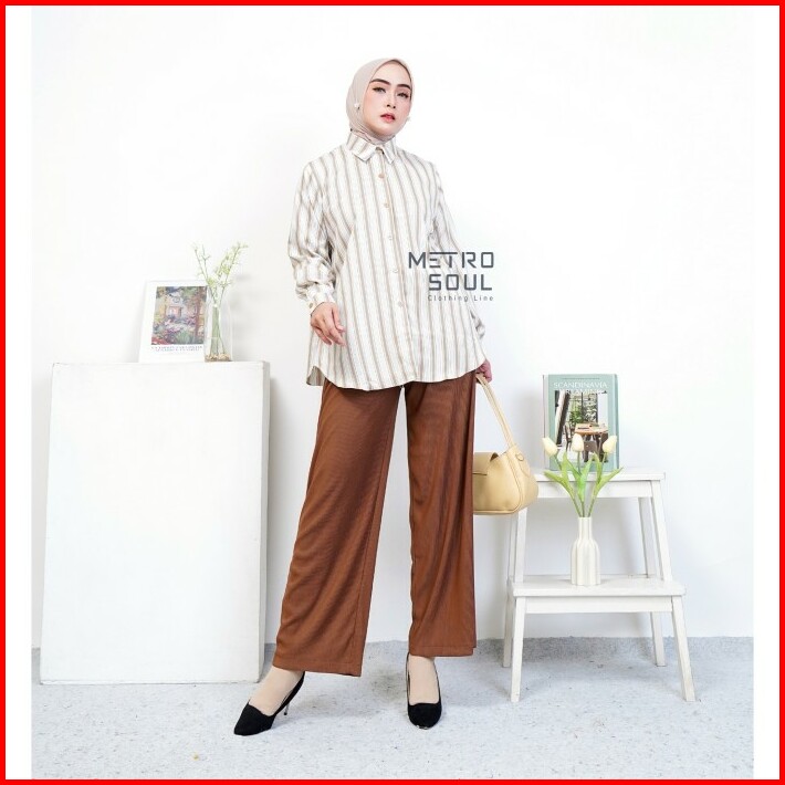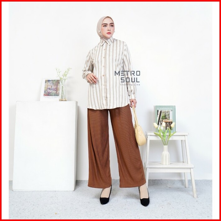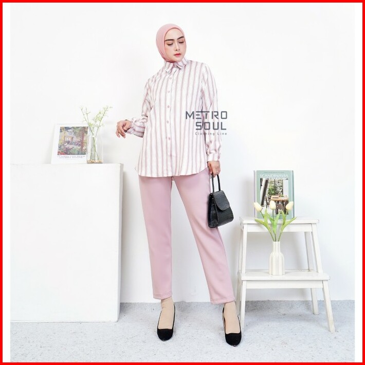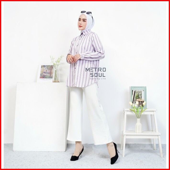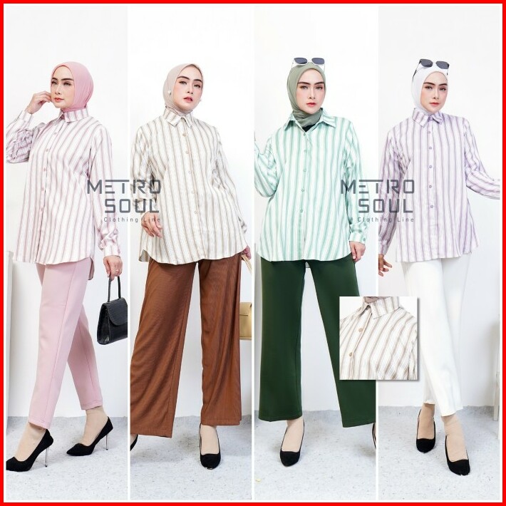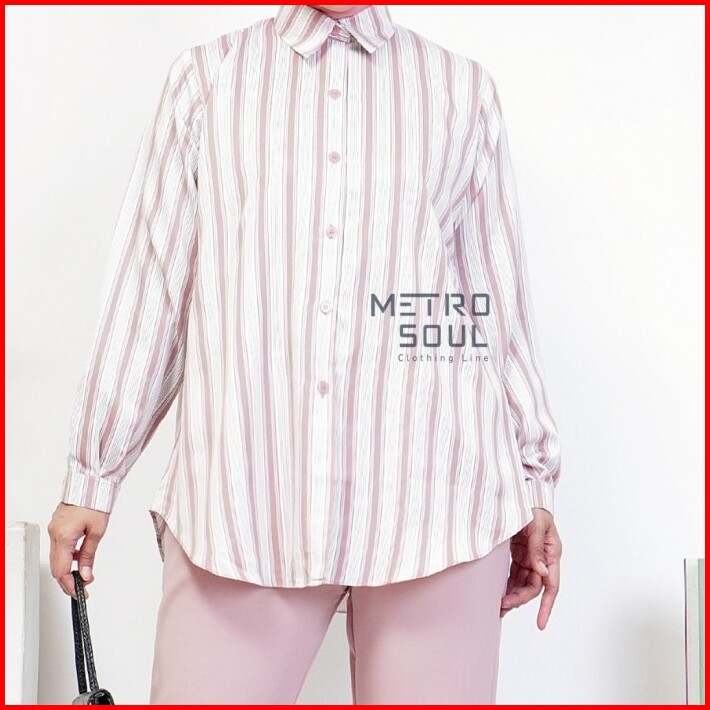 Metrosoul Atasan Wanita Kemeja Basic Salur Strip Naira Standar