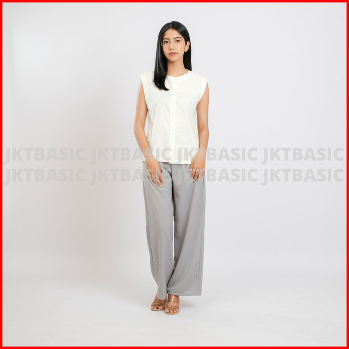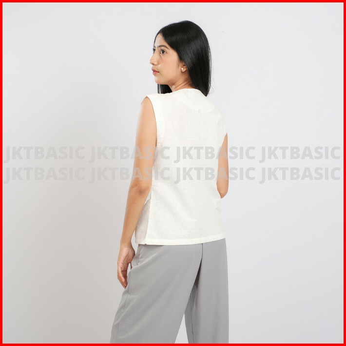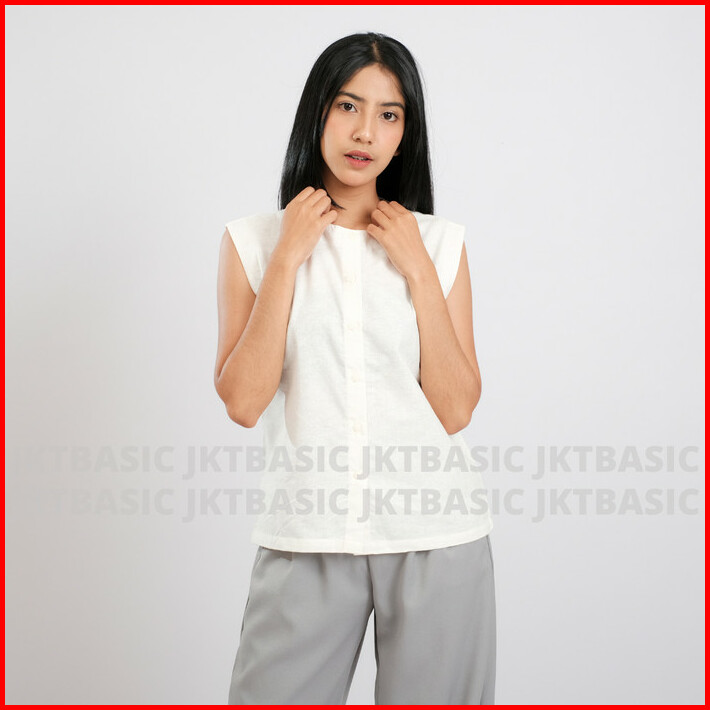 Kemeja Linen Wanita Buntung Tanpa Lengan Putih Sleeveless Shirt Putih