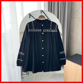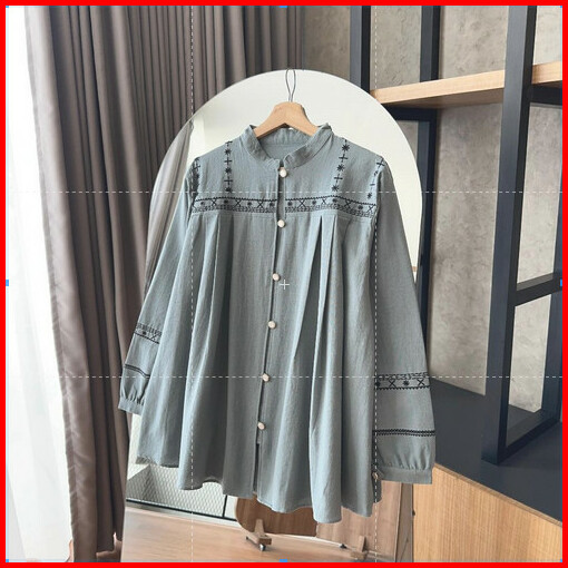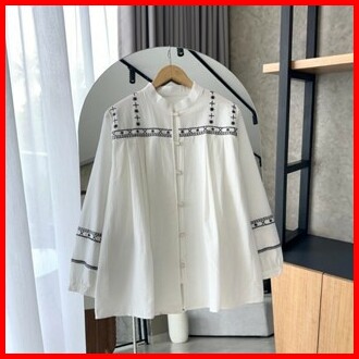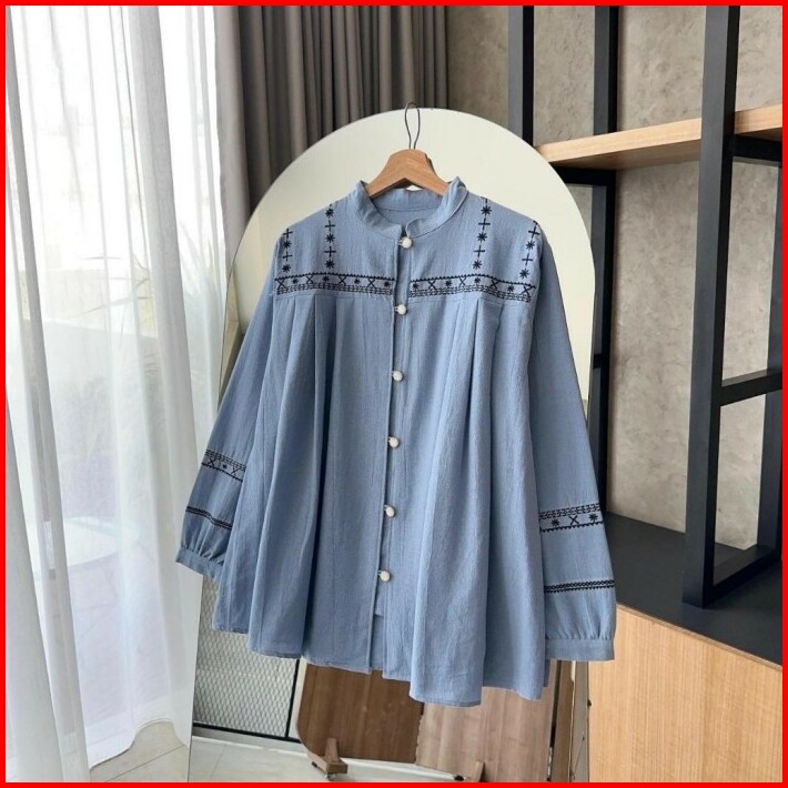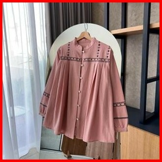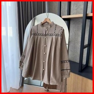 By Hana 189 A Kemeja Bordir Etnic Linen Polos