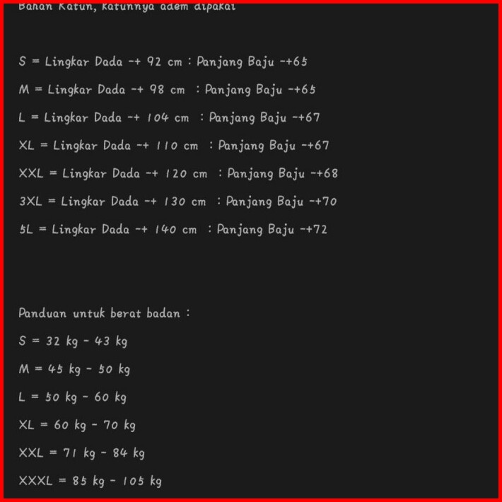 S, M, L, XL, XXL, 3XL, 5L