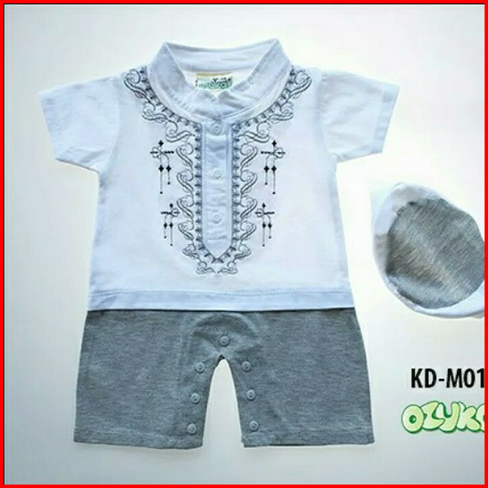 Baju Bayi Baju Muslim Koko Anak Laki-laki Romper Peci Aqiqah
