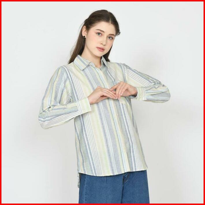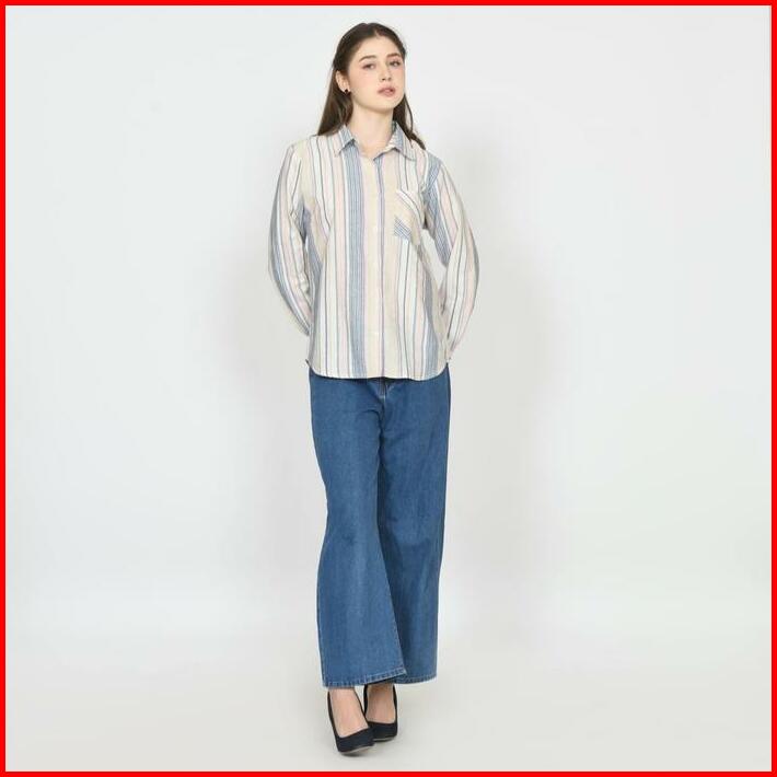 Kemeja Nevada Basma Salur Basic Wanita Bahan Katun Premium Kemeja Formal Untuk Ngantor Kemeja