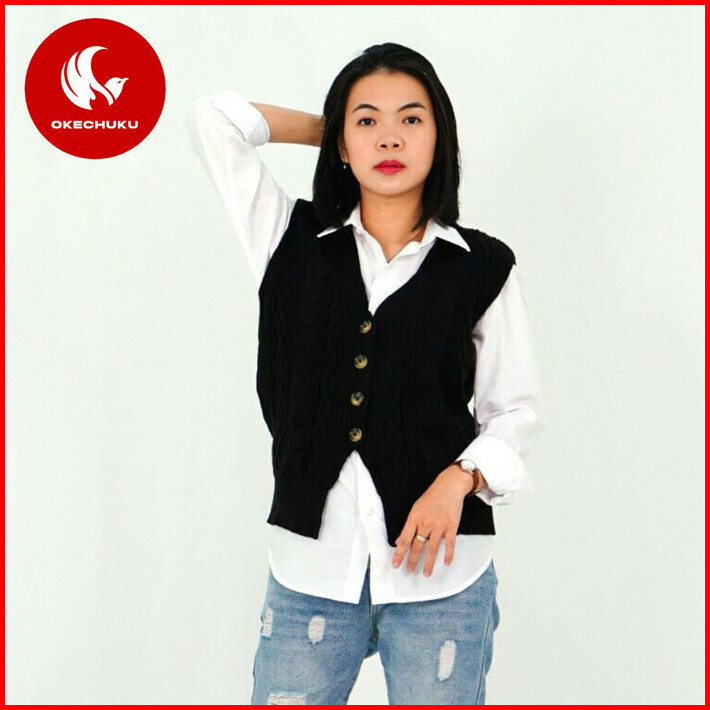 Okechuku Vest Kancing Rompi Rajut Kancing Knit Outer Korean Style