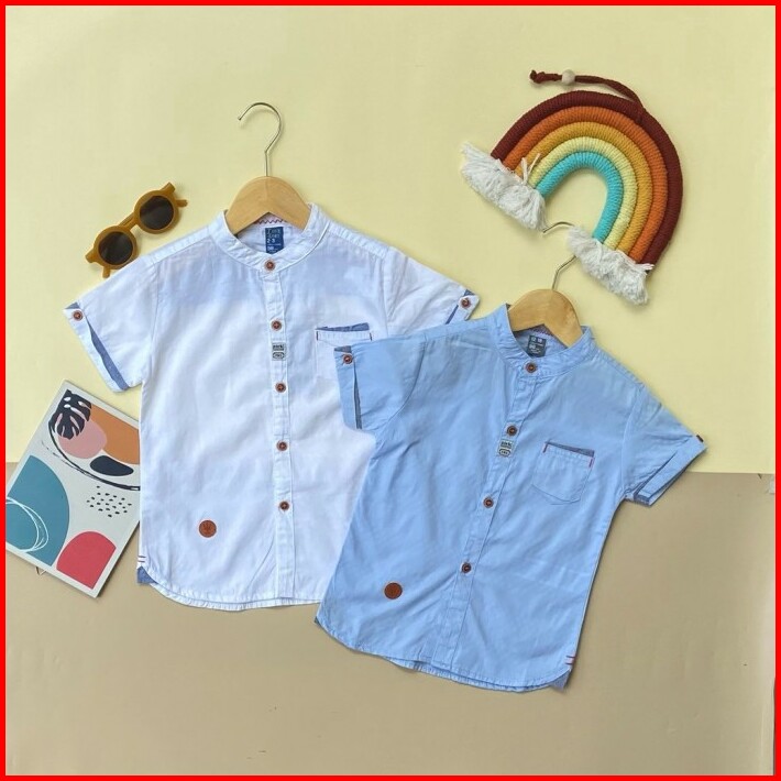 Baju Kemeja Koko Lengan Pendek Putih Sky Blue Anak Import Premium K353