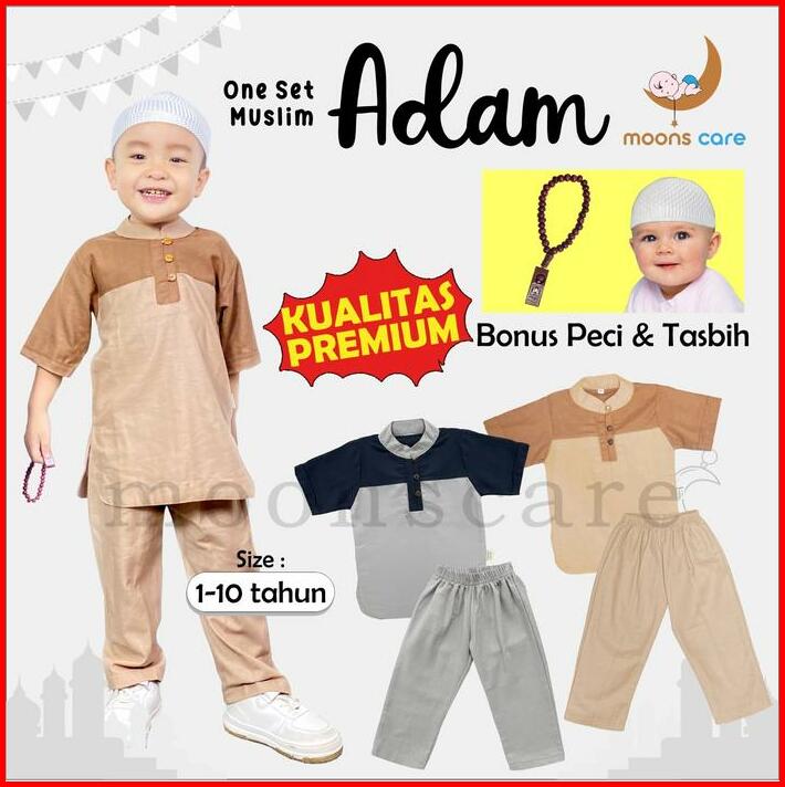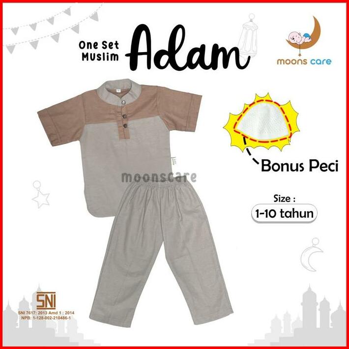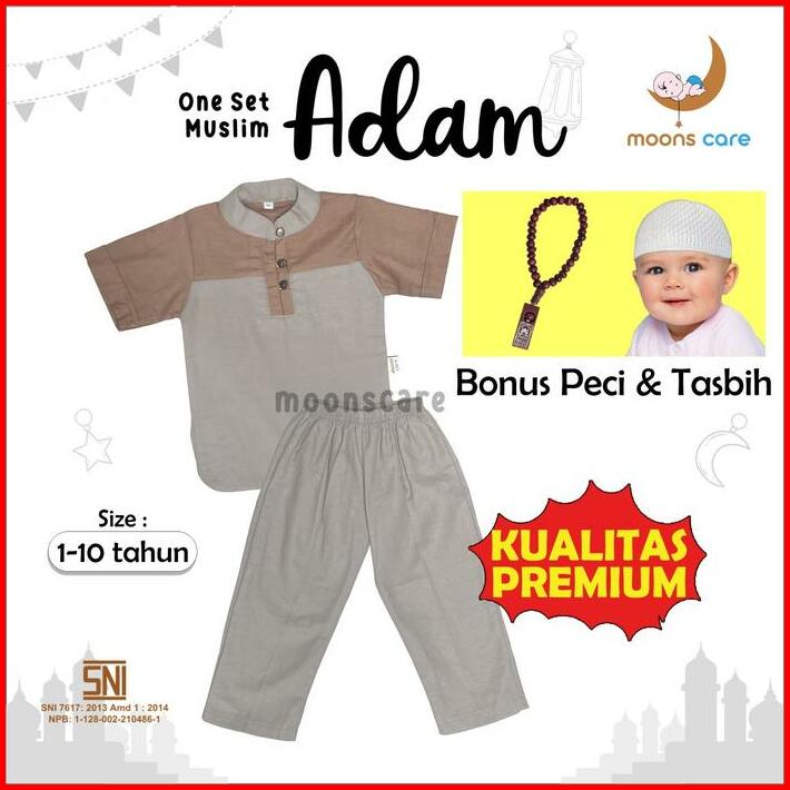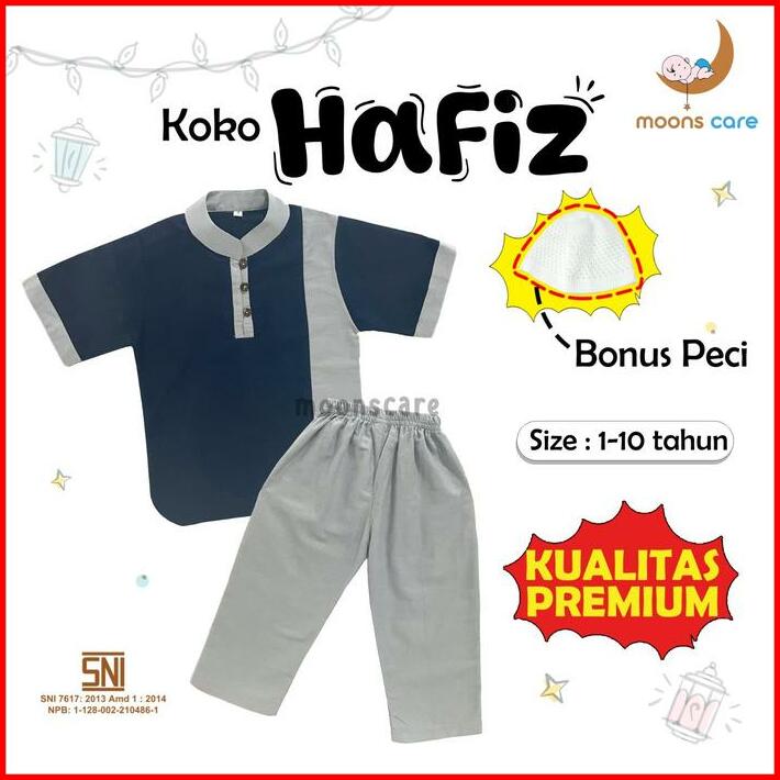Bonus Peci Moons Care Koko Adam Dan Hafiz Bahan Linen Koko Anak Bahan Adem Set Koko Pakaian Muslim Anak Laki-laki Baju L