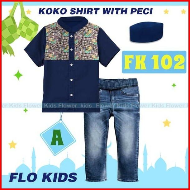 Import 2-7th Fk102 A Baju Koko Anak Laki-laki Tangan Pendek Biru Navy