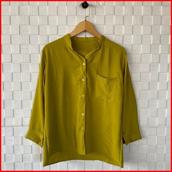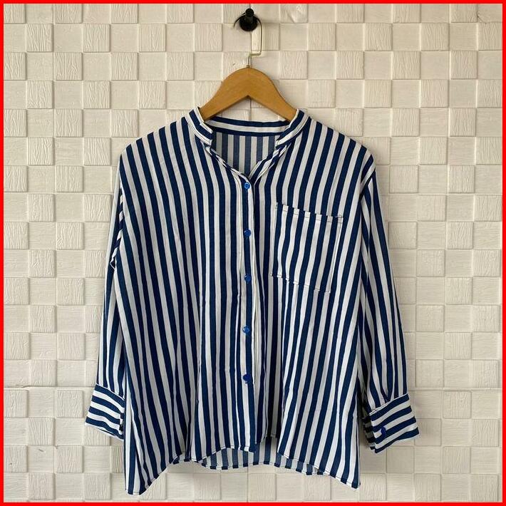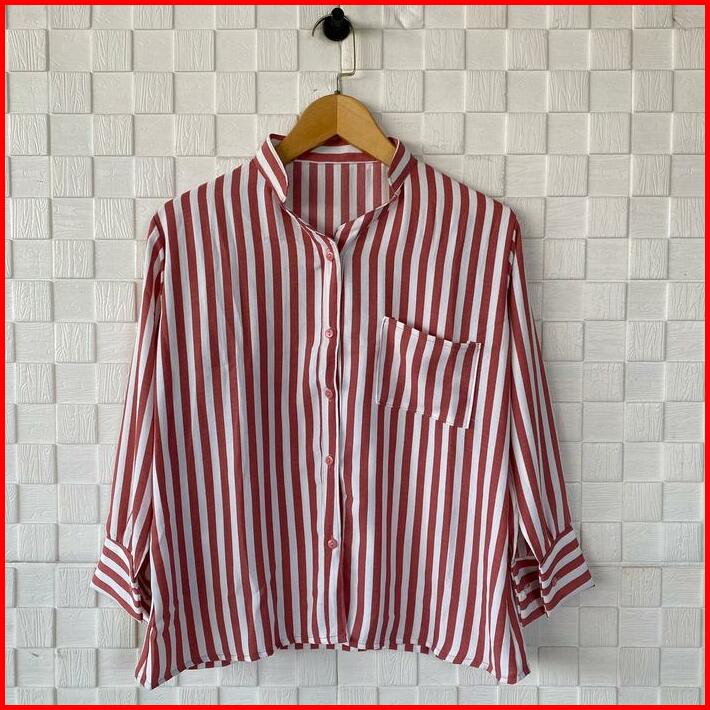 Botega Shirt Kemeja Salur Lengan Panjang Kemeja Kancing Kerah Shanghai Wanita Pakaian Wanita Terbaru Blouse