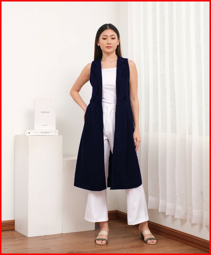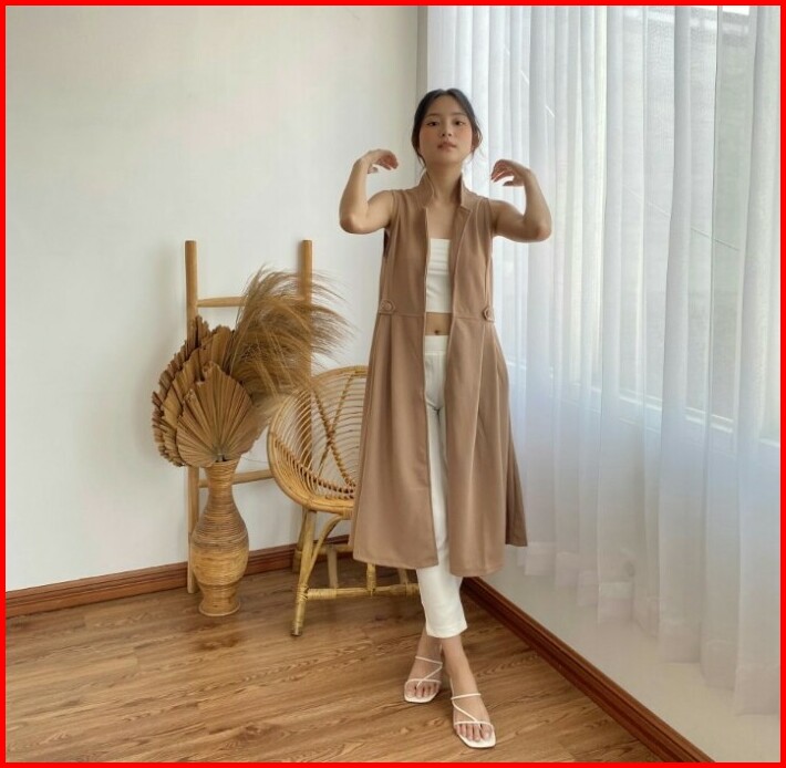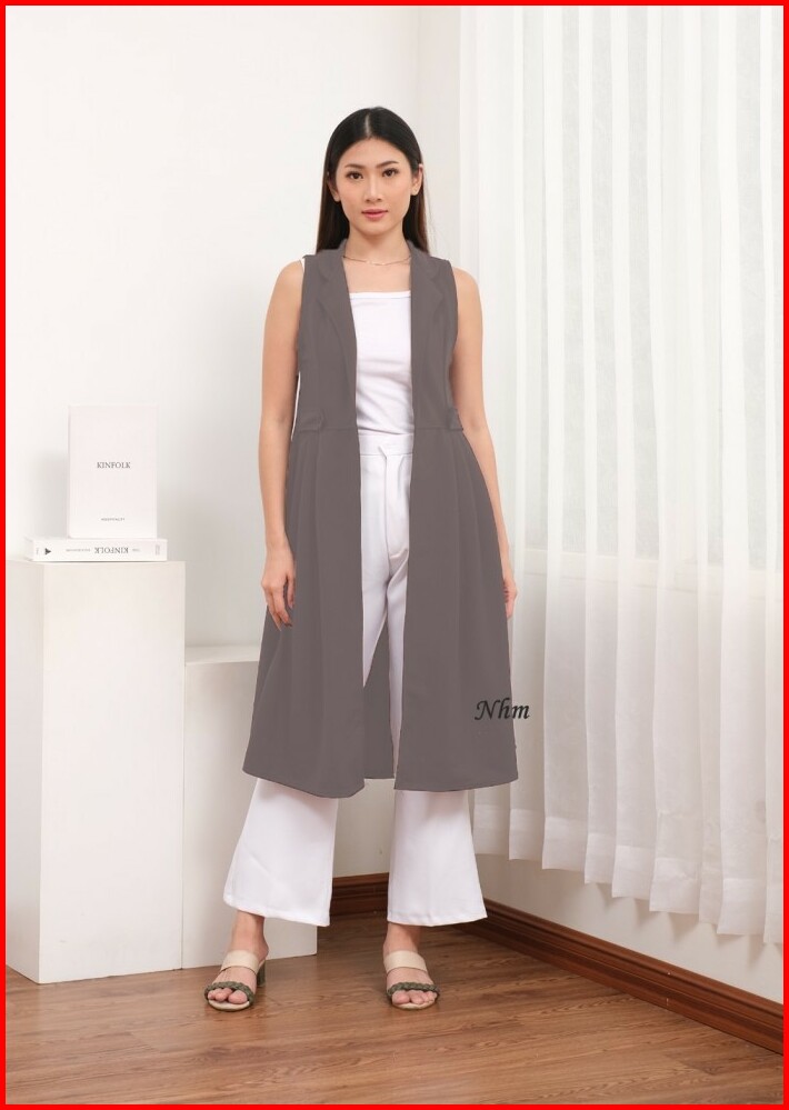 Nhm Rompi Tunik Wanita Vest Outer Polos Lorenzo 720 Merah