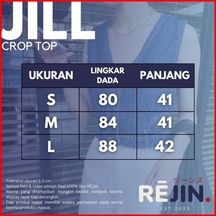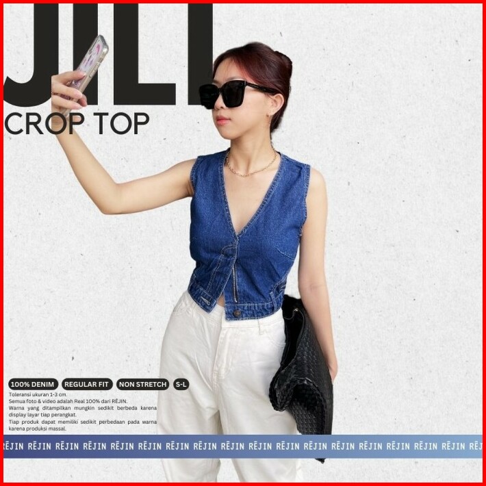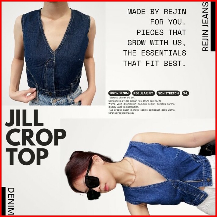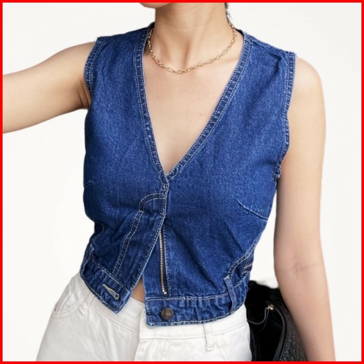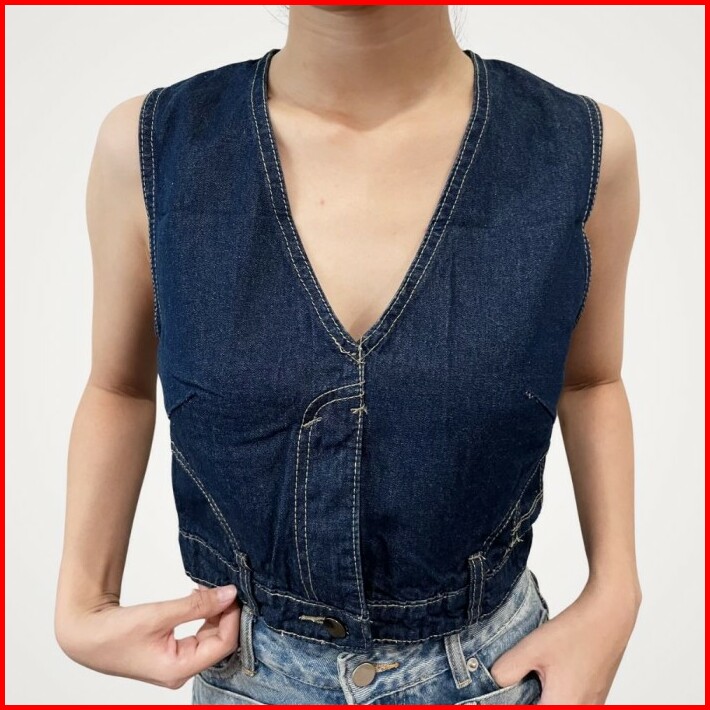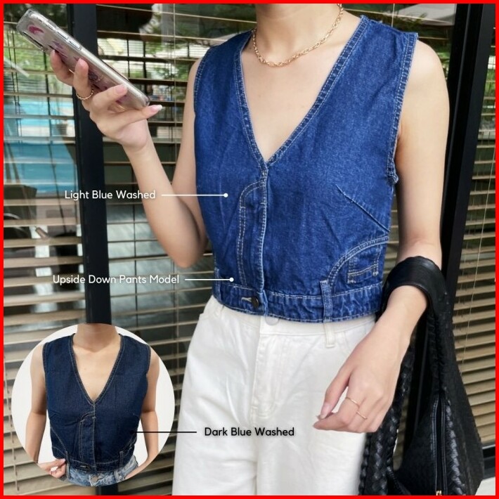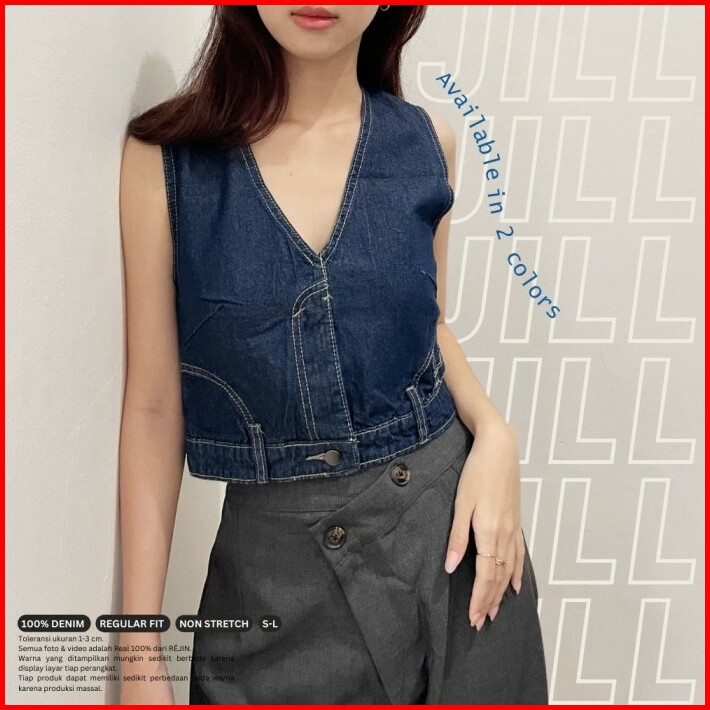 Rejin Jill Denim Cargo Tank Top Jeans Korean Atasan Wanita Outer Vest