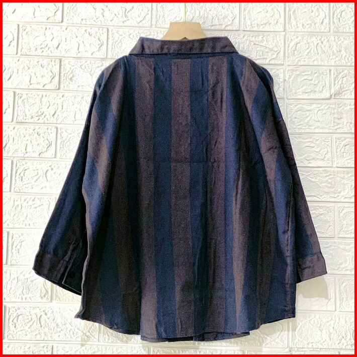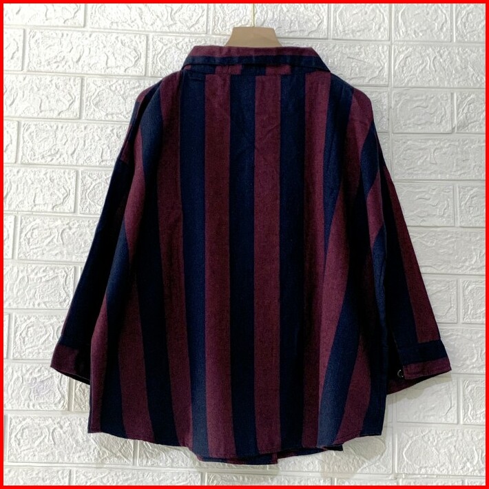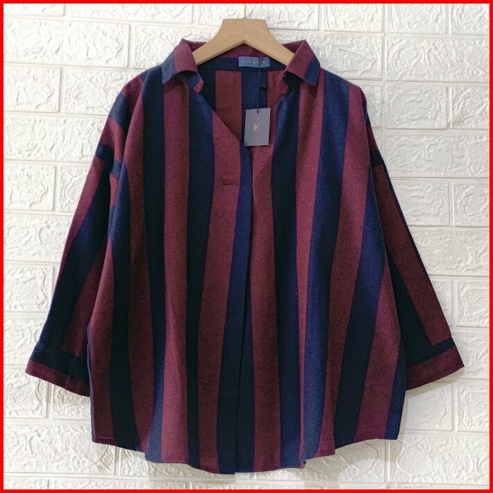 Kemeja Blouse Atasan Wanita Flanel Stripe Oversize Garis Salur Jumbo Bigsize 2xl