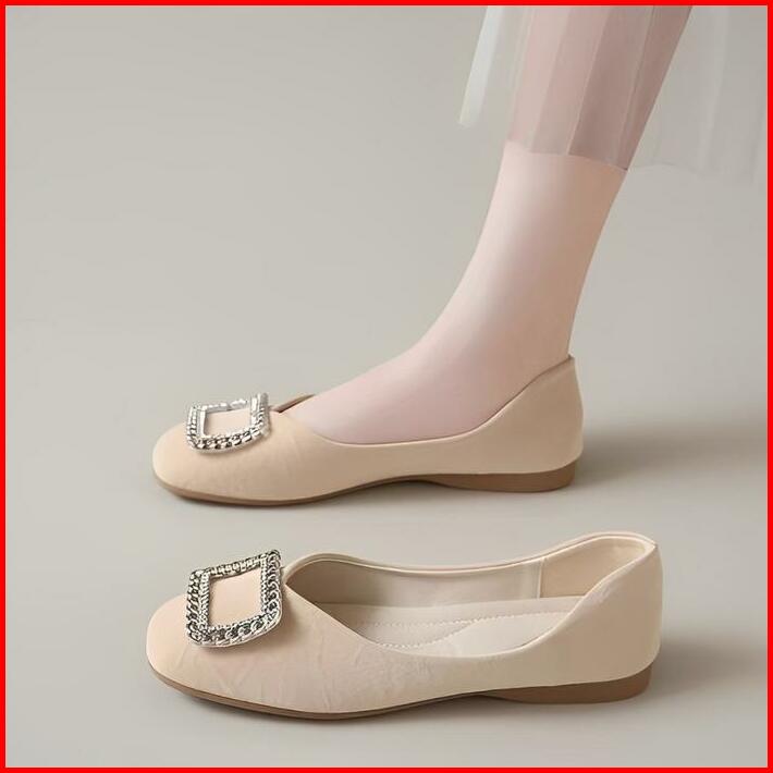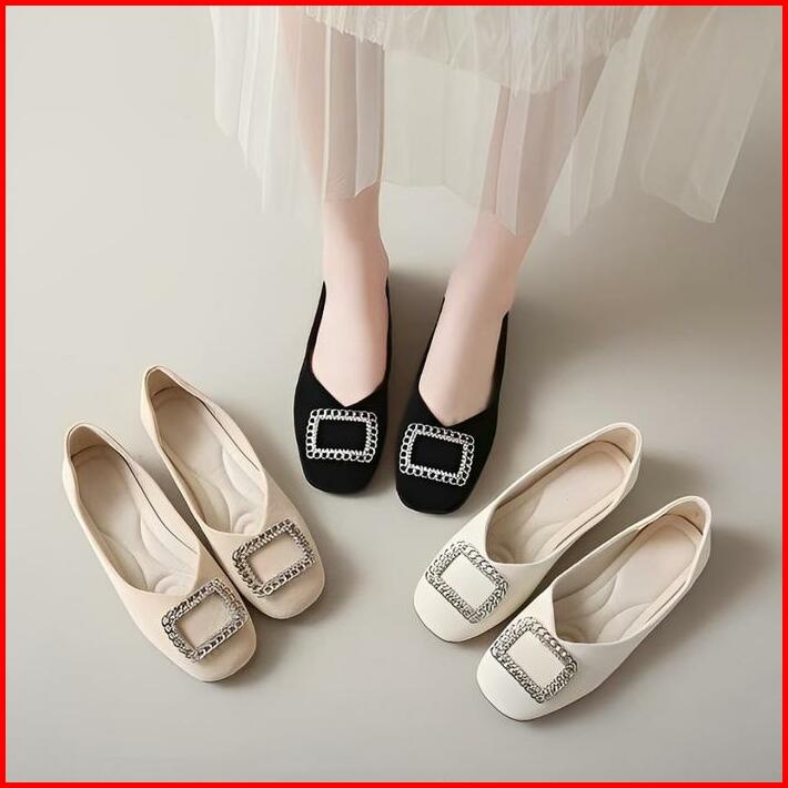 Mfi Eunji Sepatu Wanita Flatshoes Kasual Kerja Kuliah Trendy Warna Khaki Hitam Dan Putih Bludru Antiselip