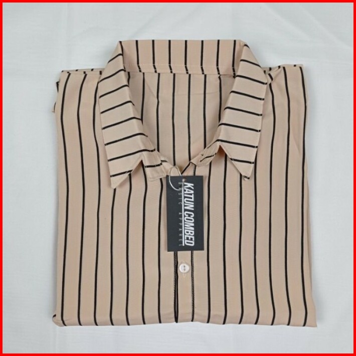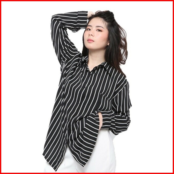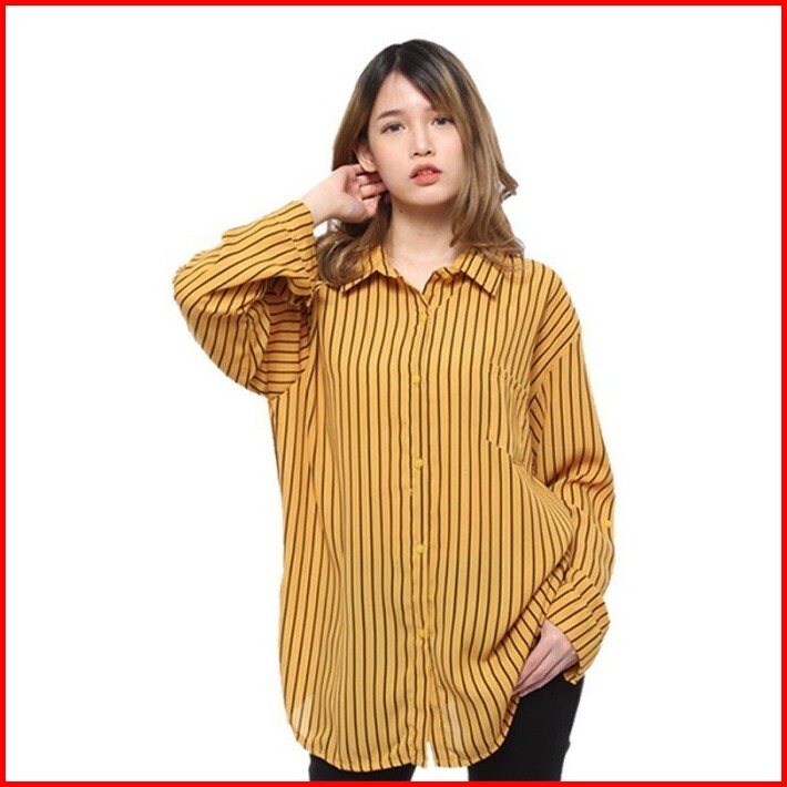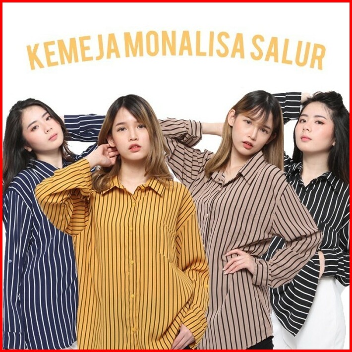 Baju Kemeja Wanita Korean Style Stripe Salur Monalisa