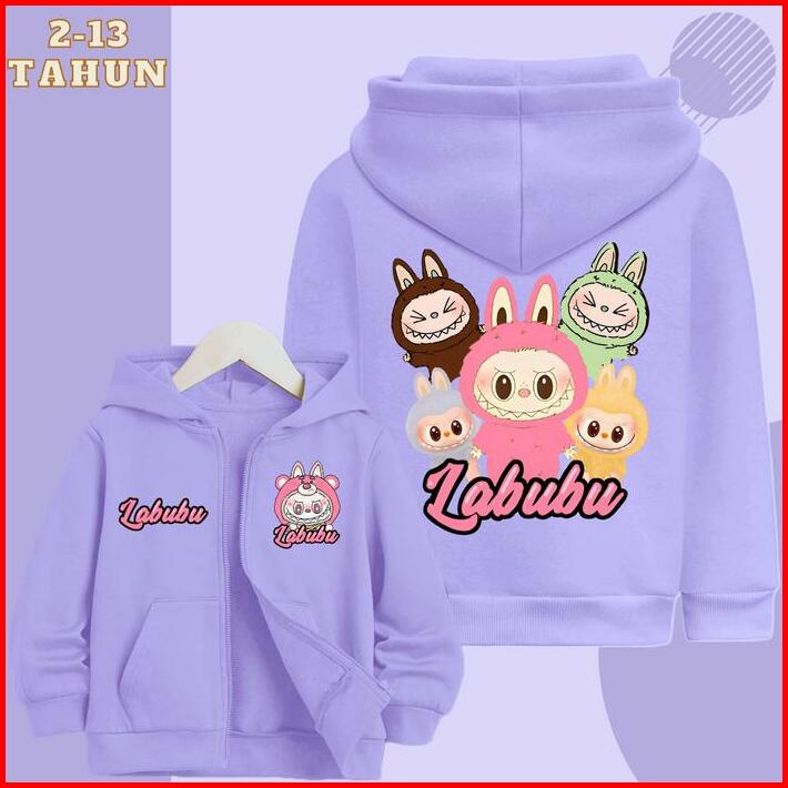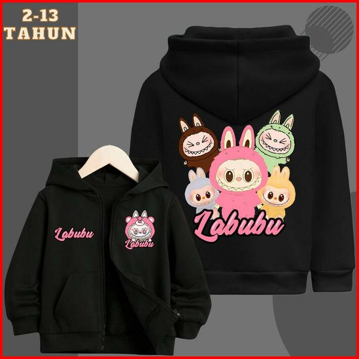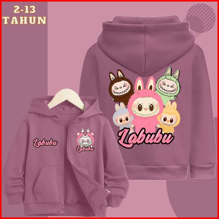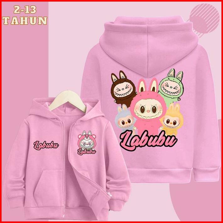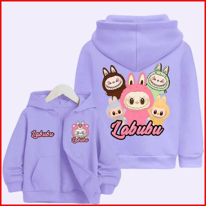 Jaket Anak Perempuan Karakter Labubu Model Resleting Usia 3-13 Tahun