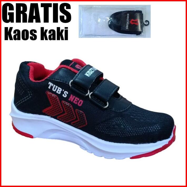 Sepatu Sekolah Anak Laki Laki Perempuan Sepatu Warna Hitam Murah Tali Perekat Rekat Kecil Tanggung Umur 6-10 Tahun Paud