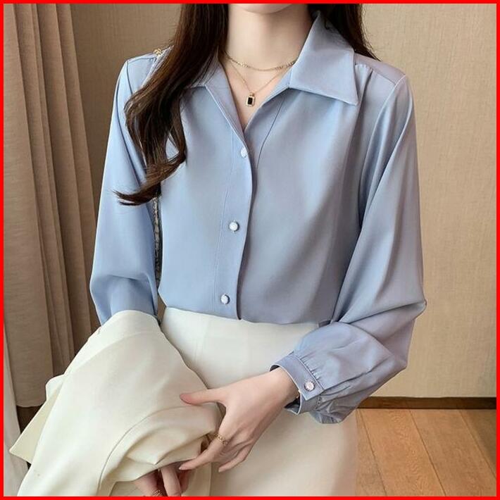 Kemeja Wanita Casual Bahan Shakila Twill Lengan Panjang Ukuran M-xxl
