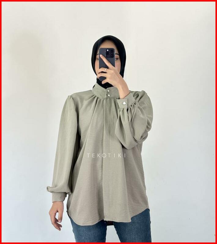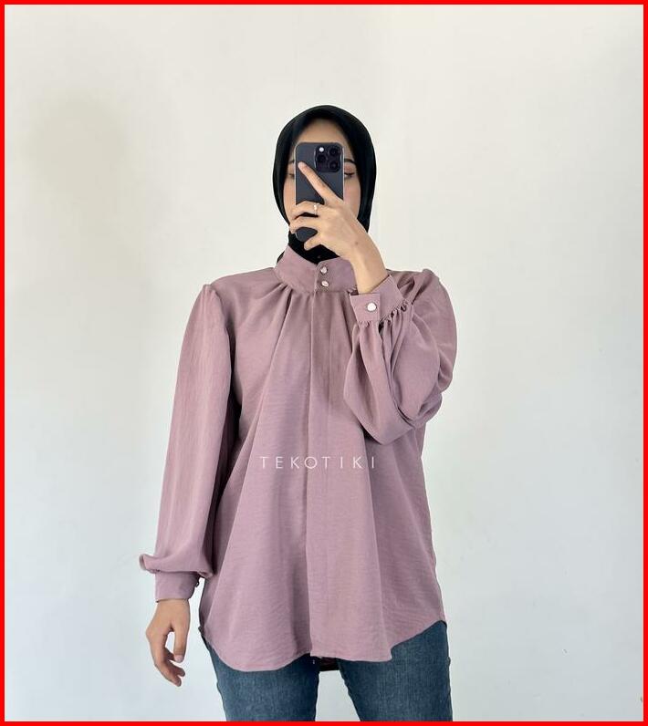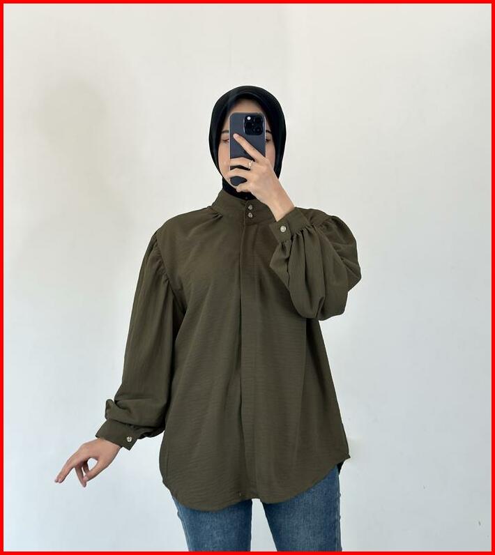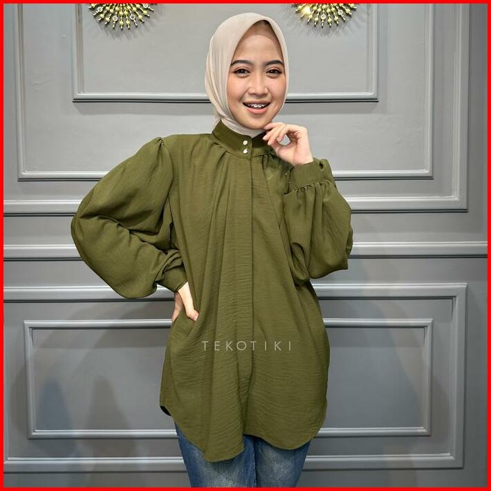 Atasan Kemeja Fatin Kemeja Wanita Blouse Crinkle Airflow Lengan Balon