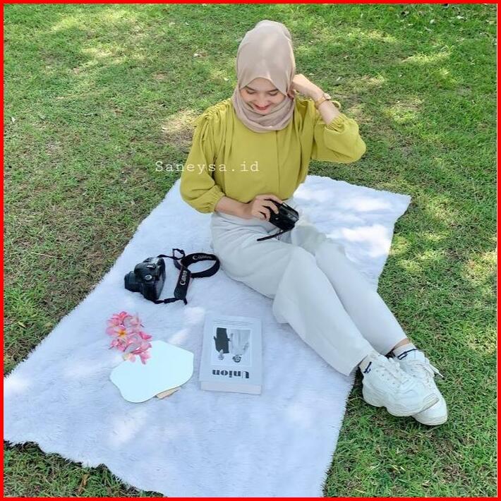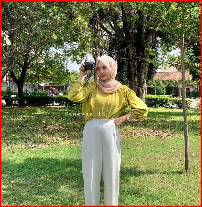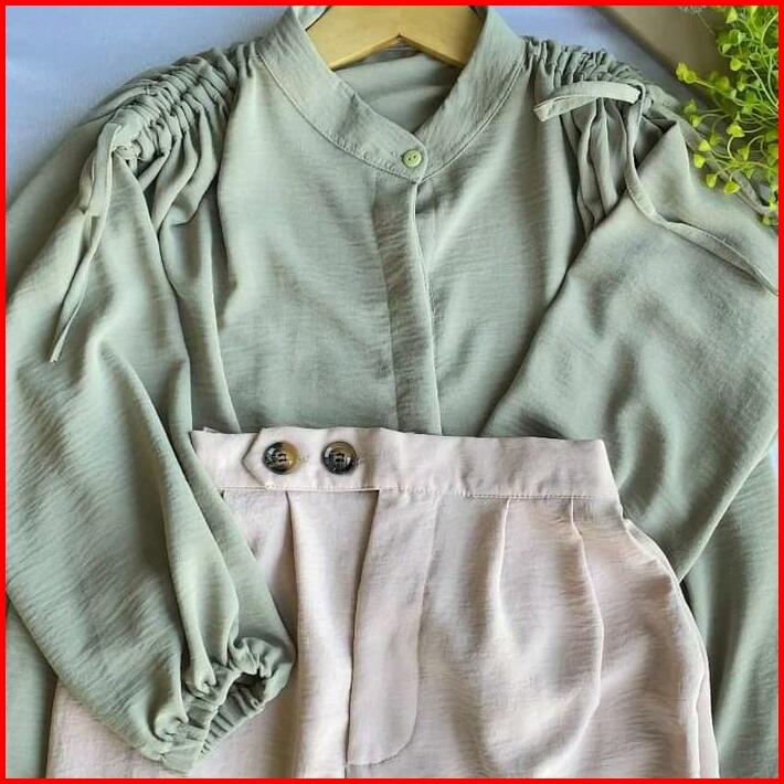 Lora Blouse Serut Crinkle Wanita Blouse Tali Serut Blouse Serut Tangan Kemeja Serut Crinkle Airflow Baju Panjang