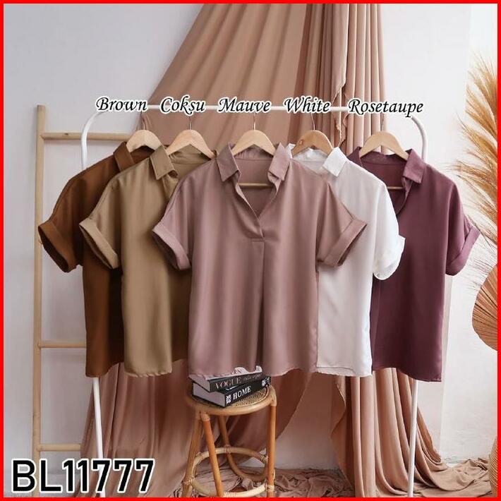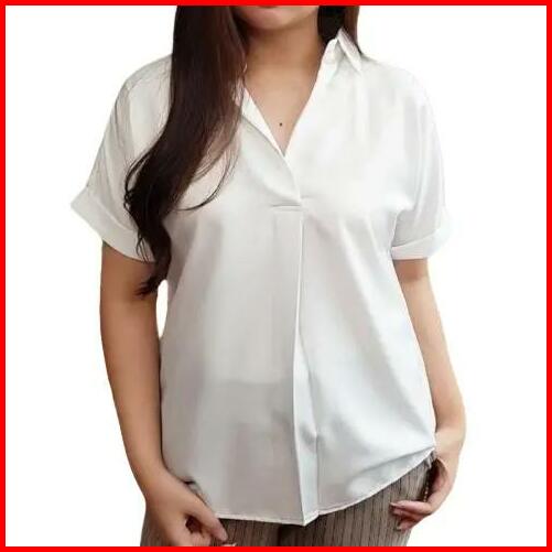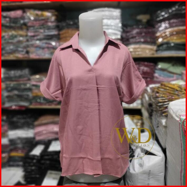Baju Kemeja Polos Wanita Atasan Blouse Casual Lengan Pendek Kantor Kekinian Bahan Shakila Twill Premium Panjang Katun Ce