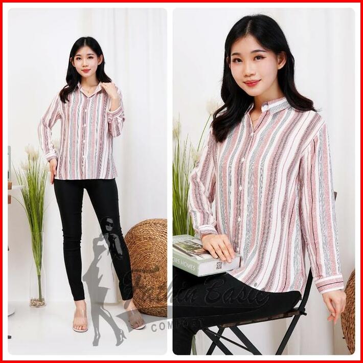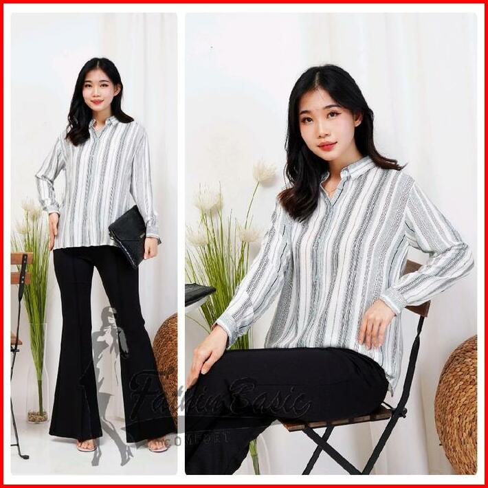 Fathinbasic Kemeja Blouse Baju Atasan Wanita Motif Rayon Kekinian Lengan Panjang