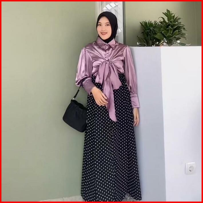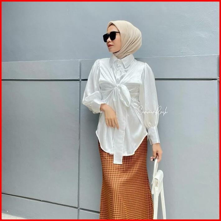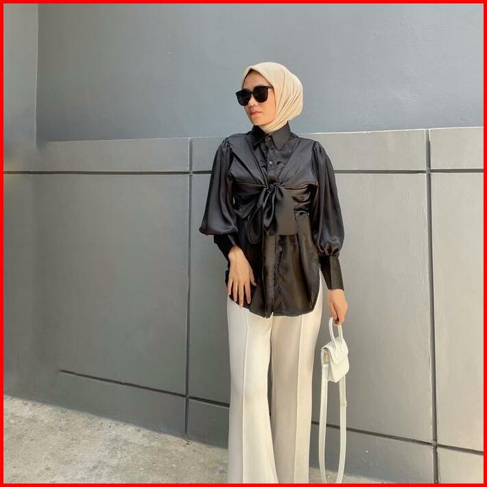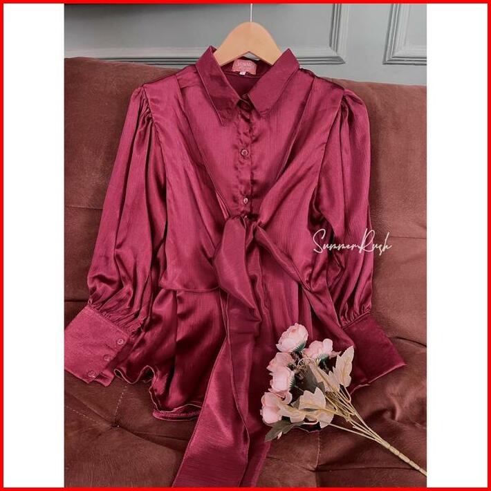Queena Top Cardenza Silk Kemeja Polos Lengan Balon Busui Santai Baju Atasan Wanita