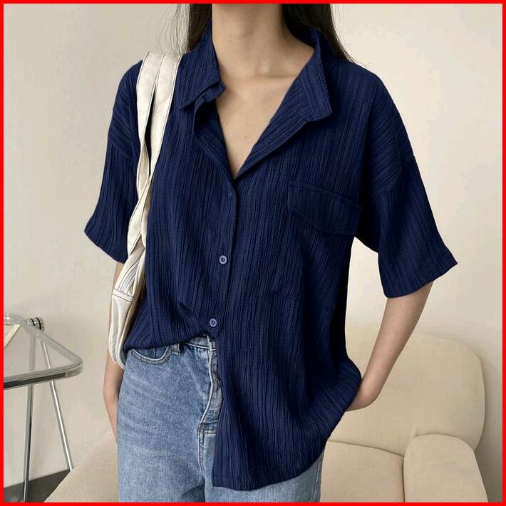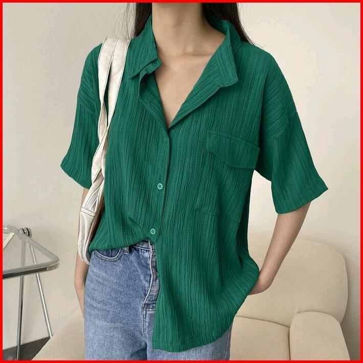 Kemeja Wanita Helen Shirt Basic Lengan Pendek Lady Crush Baju Atasan