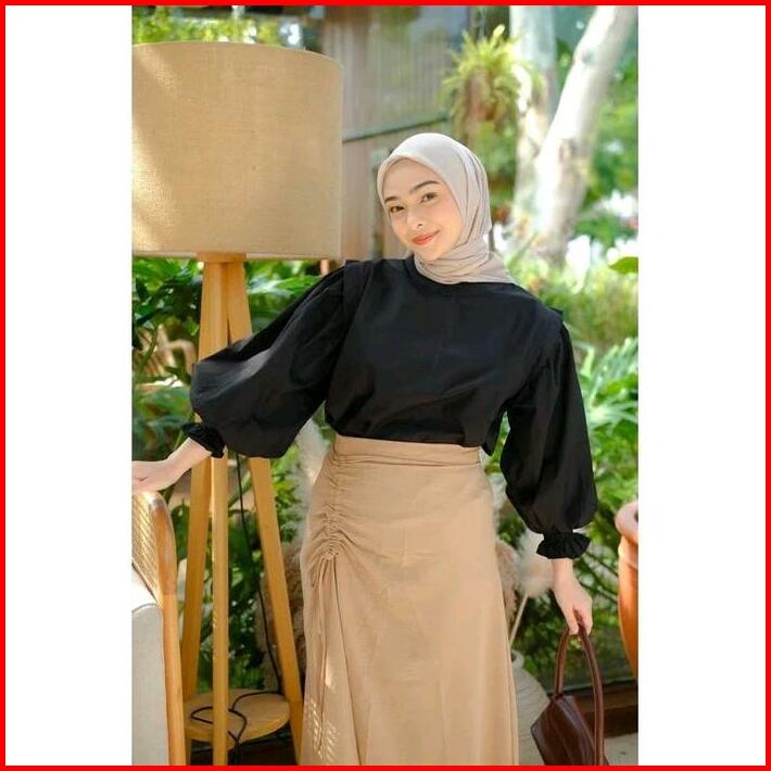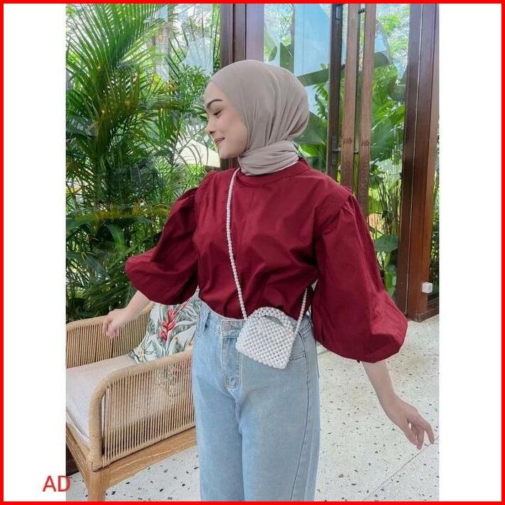 Moni Blouse Katun Poplin Kemeja Wanita Lengan Kerut Katun Santai