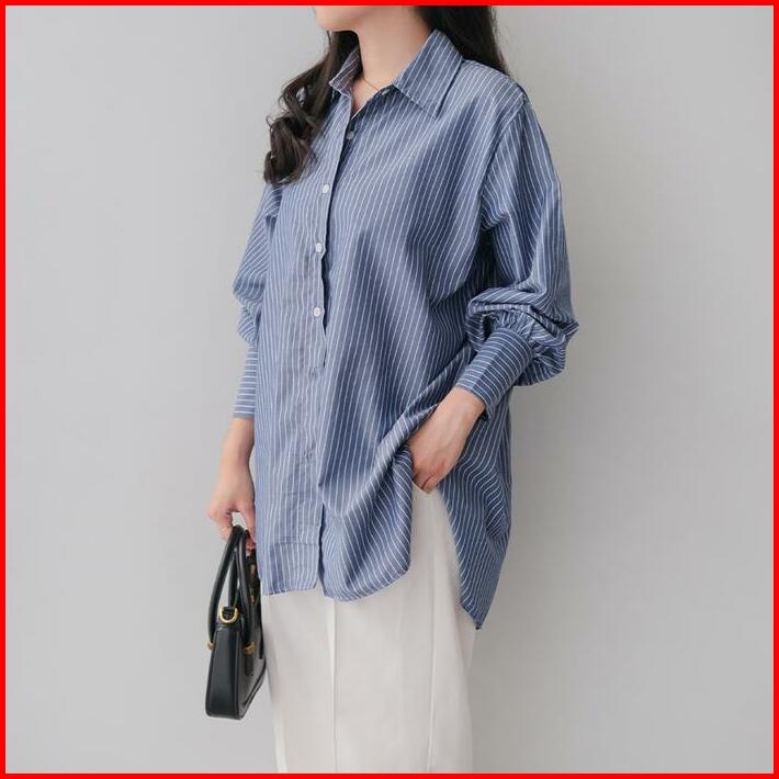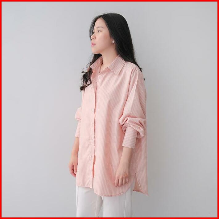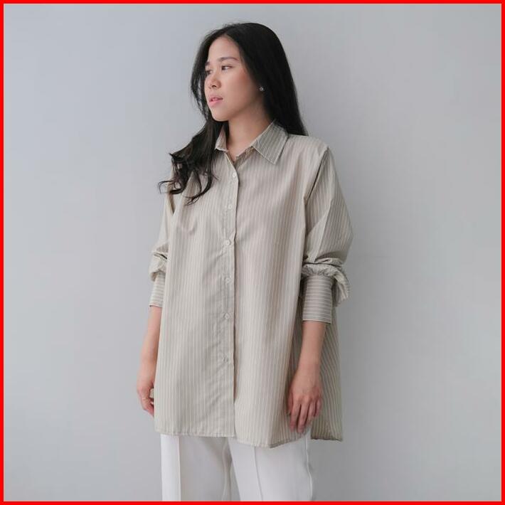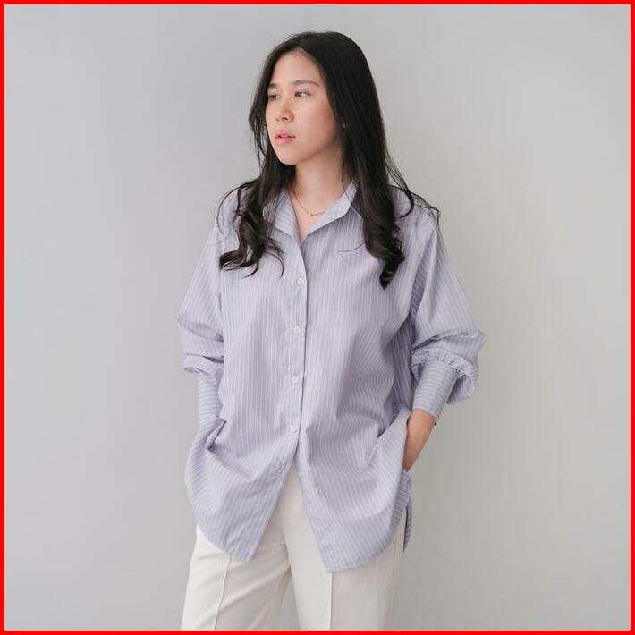 Tiffany Stripes Editions Kemeja Atasan Salur Wanita Lengan Panjang Kemeja Kerja Kantor Casual