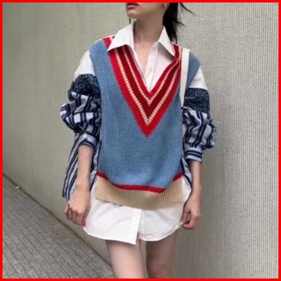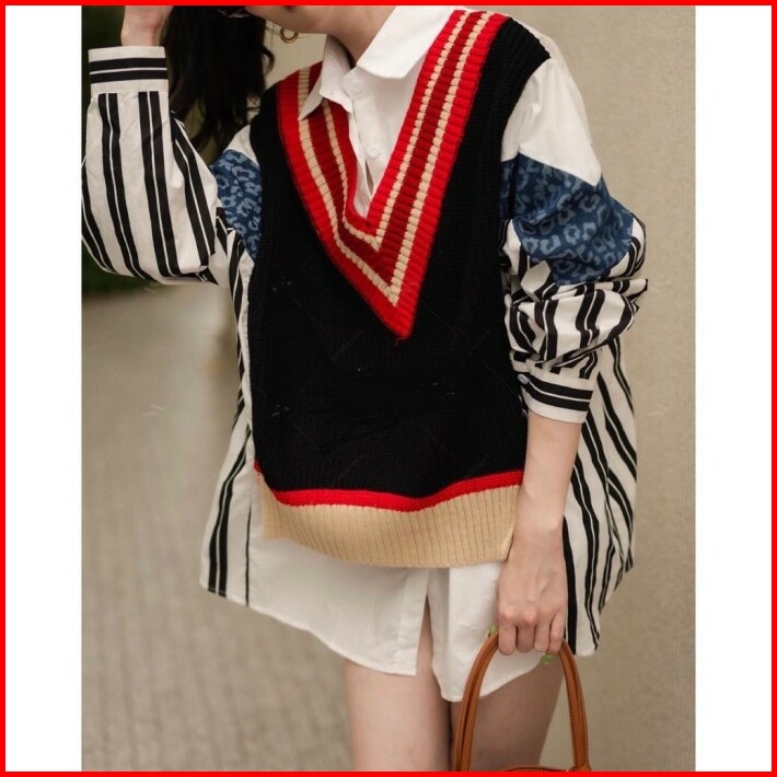 Atasan Blouse Kemeja Knitted Vest Colorful List Funky Patterns Classy Import Shirt
