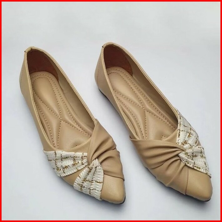 Sepatu Wanita Flatshoes Wooken Balet Simple Karet Lentur Untuk Kerja Daily