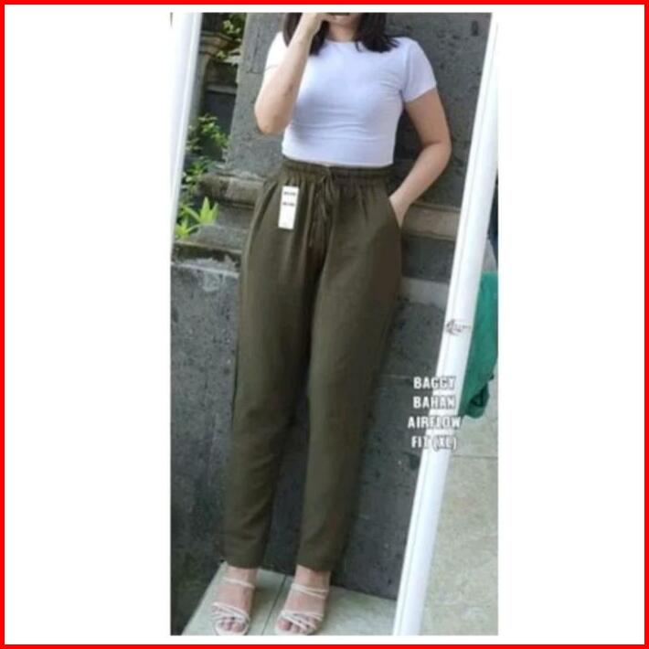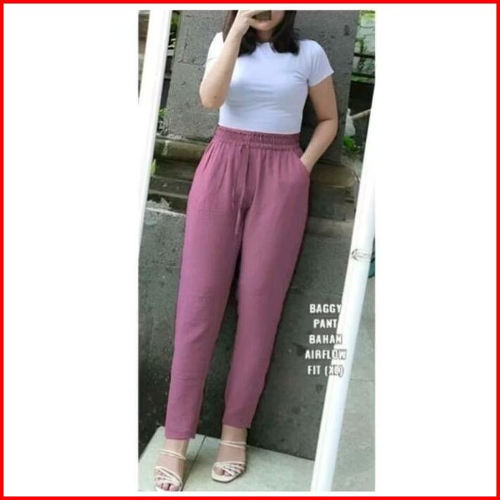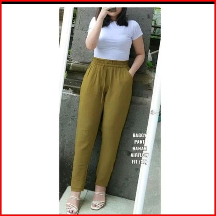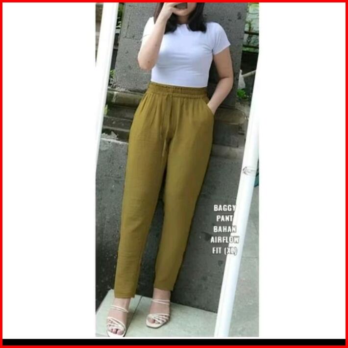 Baggy Pants Crekle Air Floy Baggy Pants Crekle Celana Wanita Panjang Airflow Crinkle Fit Kantong Serut Standar