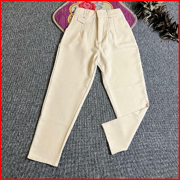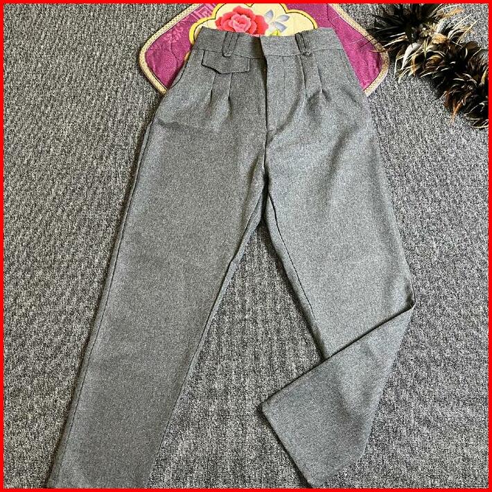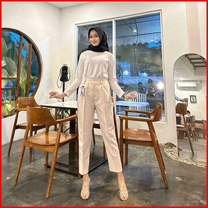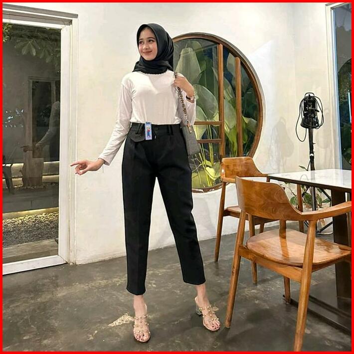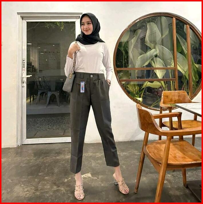 Ara Basic Pants Highwaist Semi Woll Celana Panjang Wanita Baggy Angkle Pants Cream Mocca Grey Hitam