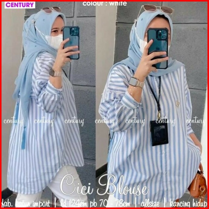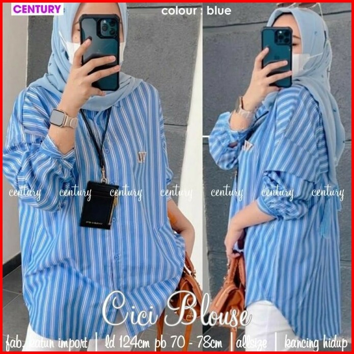 New Cici Blouse Kemeja Jumbo Wanita Katun Salur Premium Modis Casual