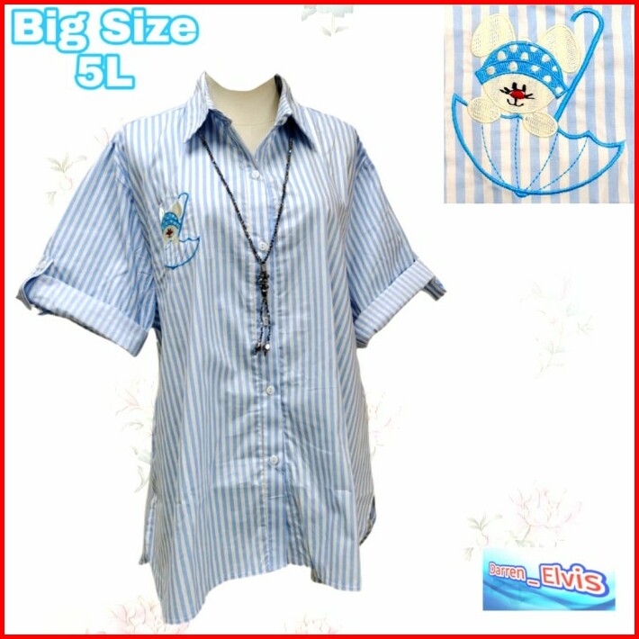 Kemeja Wanita Big Size Salur Biru Bordir Girl Sb002 5l