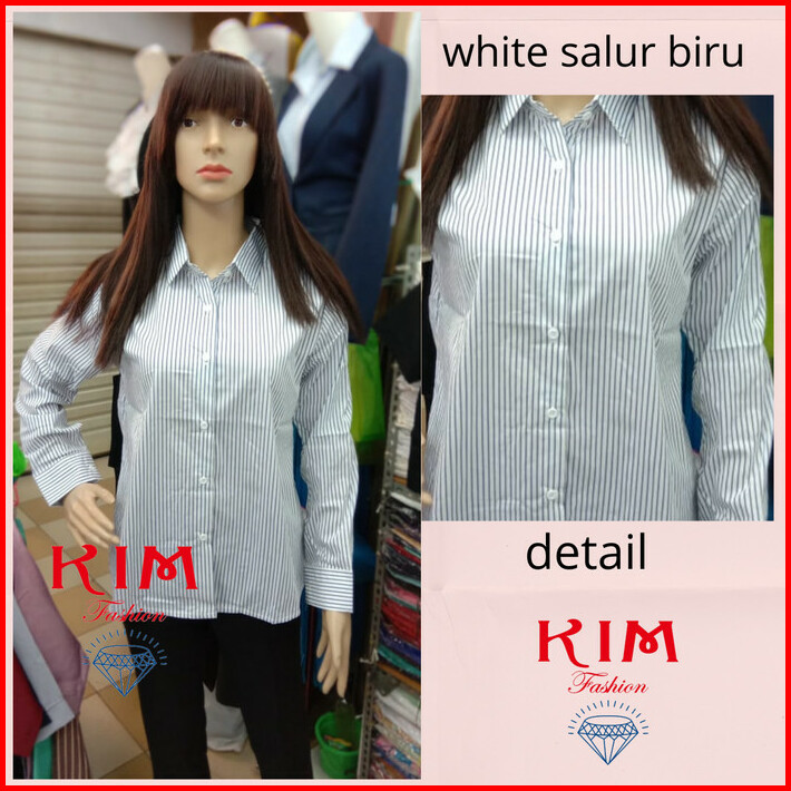 Atasan Wanita Kemeja Kerja Kantoran Kemeja Stripe Kemeja Salur Wanita