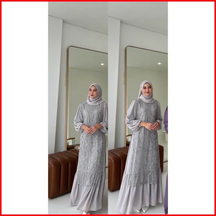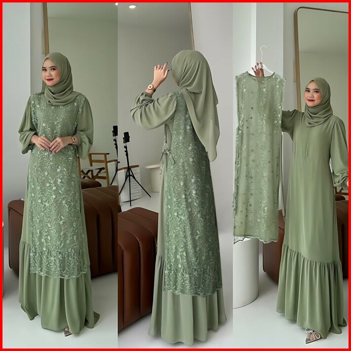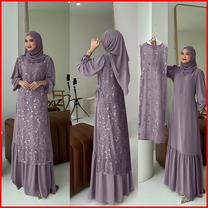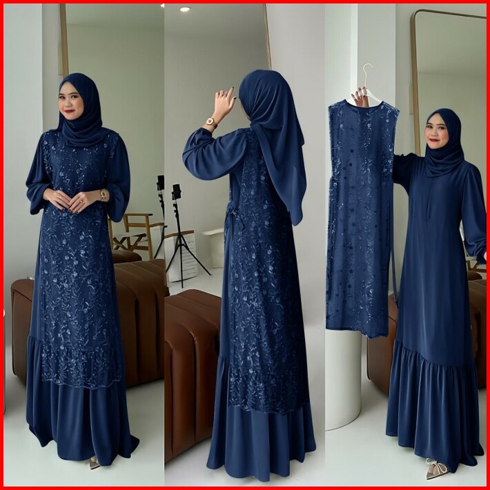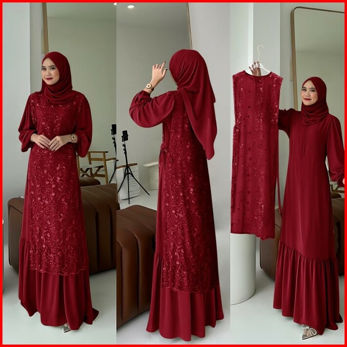 Dress Sintia Dress Inner Outer Brukat Tile Premium Oneset Dress Kondangan Gamis Muslim Wanita Mewah Pesta Bordir Maxi Mu