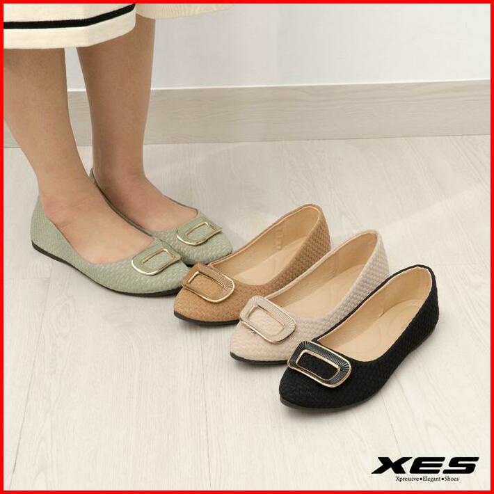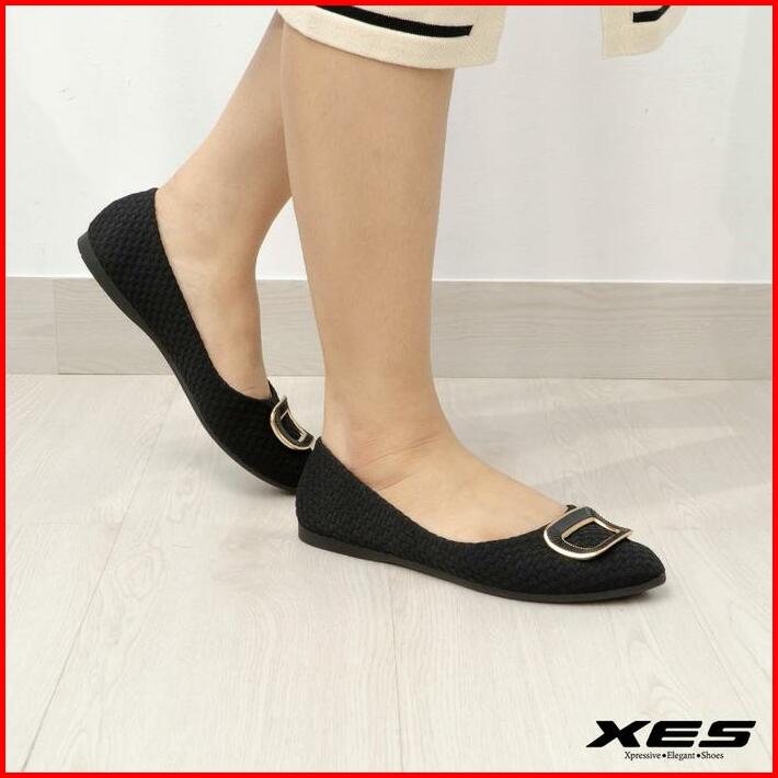 Xes Dofla-756t Sepatu Flatshoes Kuliah Wanita 1cm Big Black Kerja