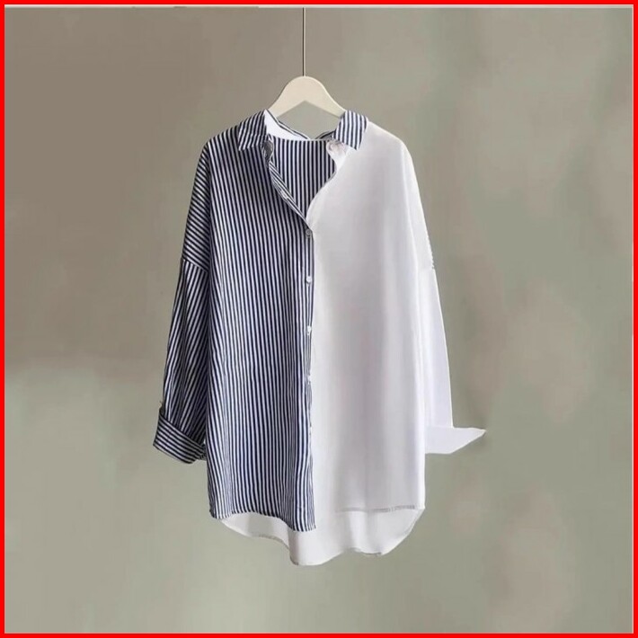Juliet Blouse Kemeja Salur Wanita Kemeja Salur Biru