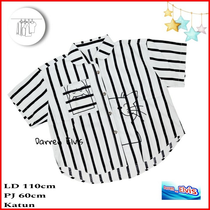 Kemeja Salur Biru Wanita Import Bordir Kuda