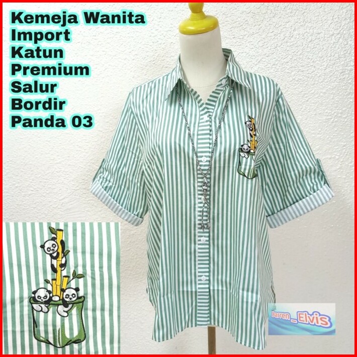 Kemeja Wanita Salur Hijau Bordir Panda 003 Xl