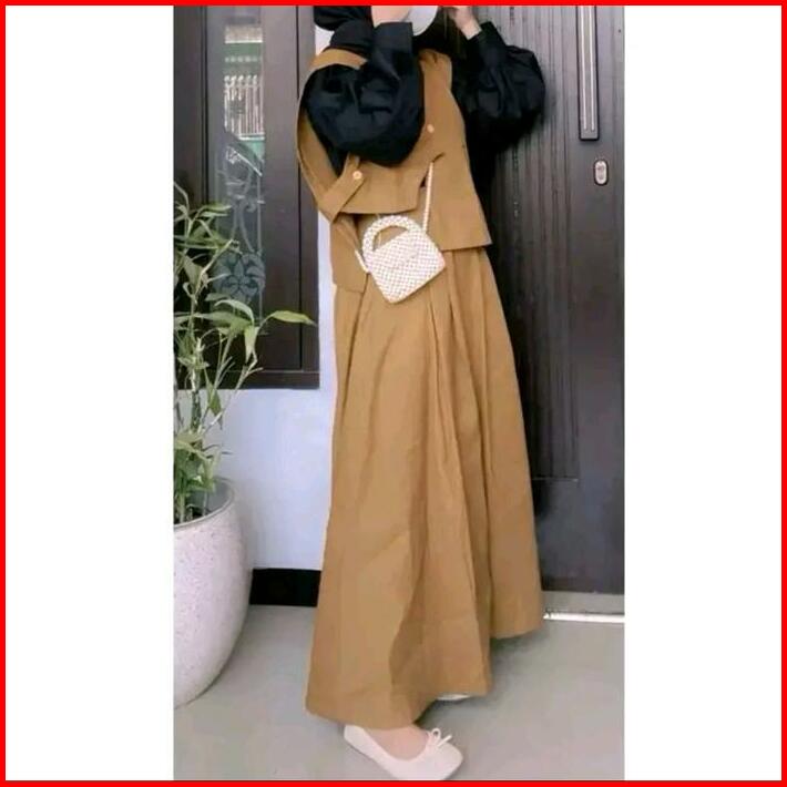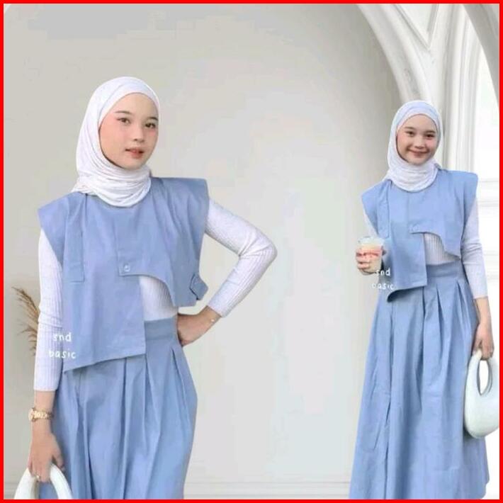 Setelan Wanita Muslim Zeela Vest Dan Rok Katun Linen Korean Style