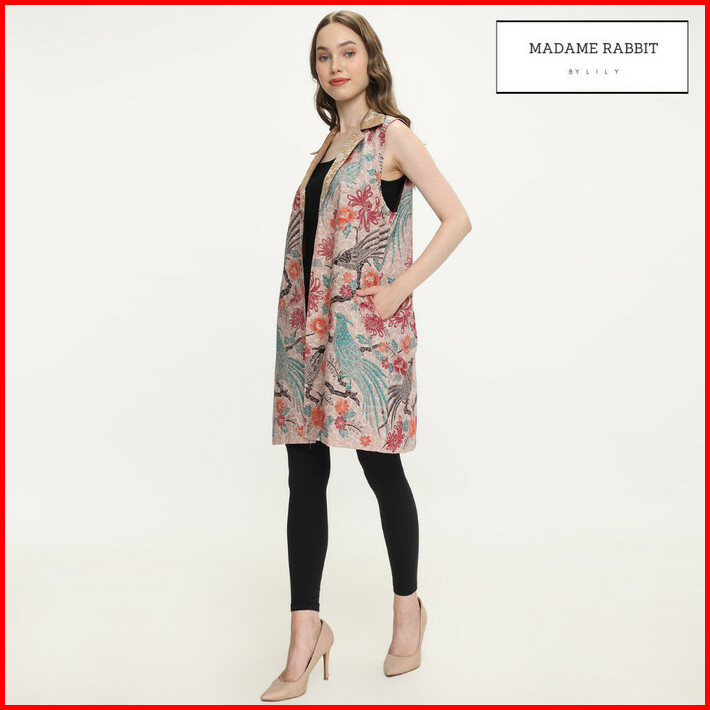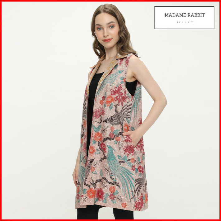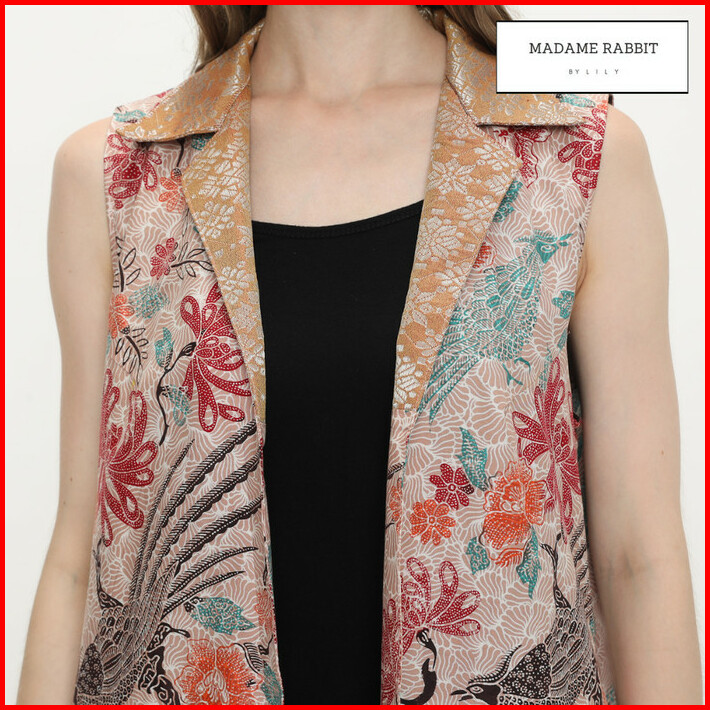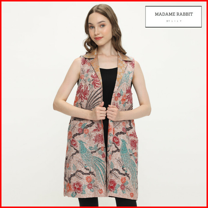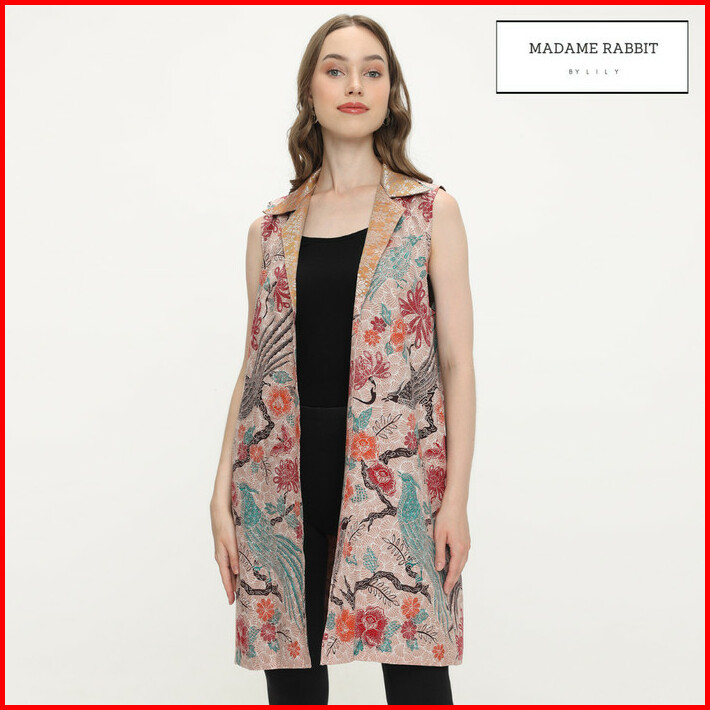 Outer Batik Madame Rabbit Long Vest Blazer Panjang Coklat Rapi