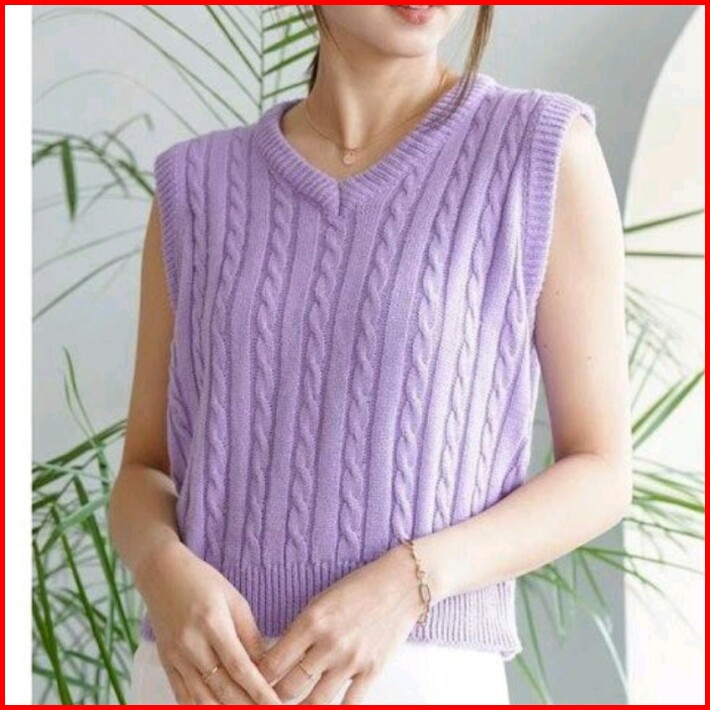 Vest Rompi Outer Knit Rajut Ungu Purple Lilac Lavender Wanita Casual