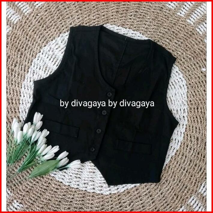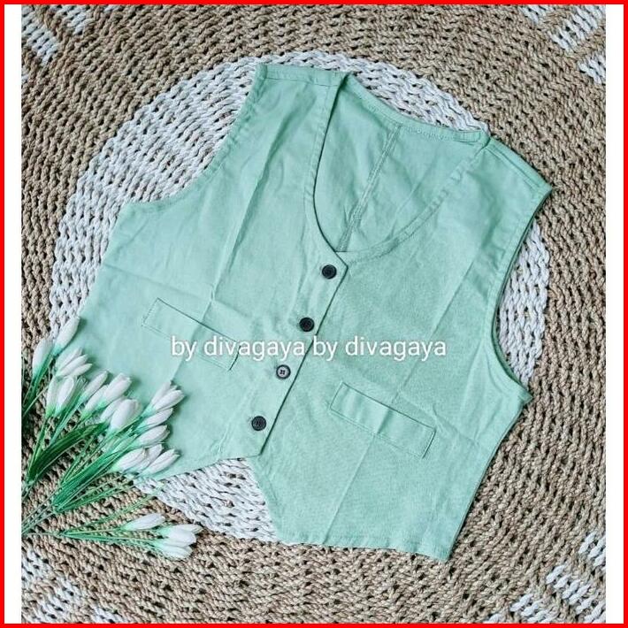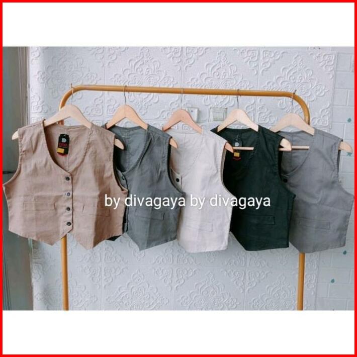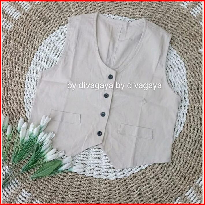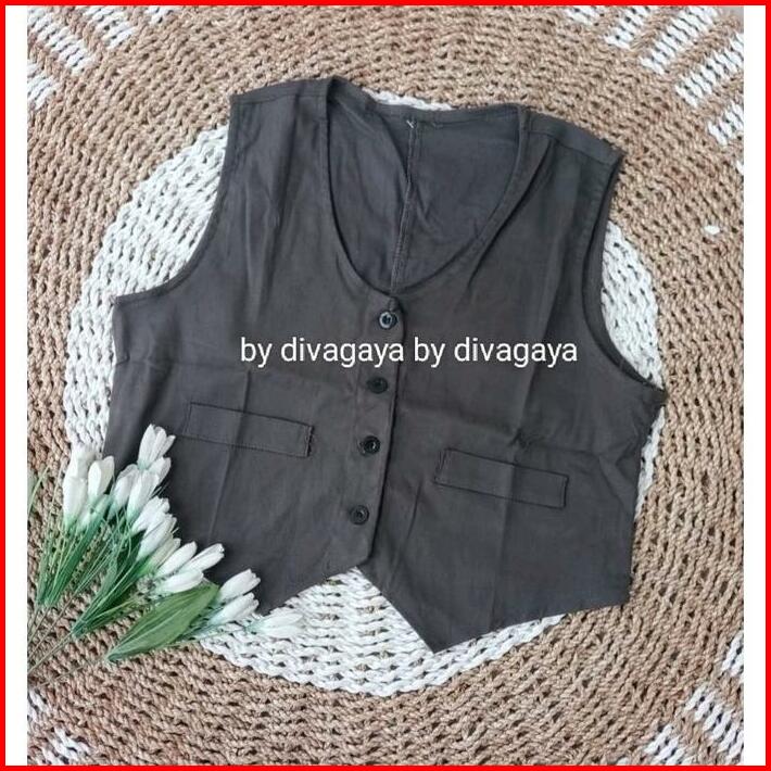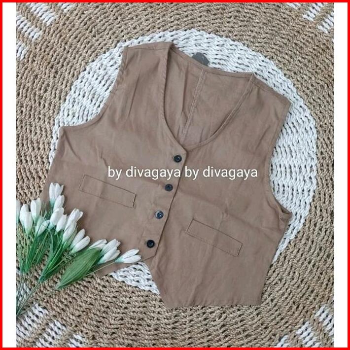 Vest Rompi Wanita Dewasa Bahan Katun Twill Ves Rompi V-neck Outer Tanktop Ootd Keren