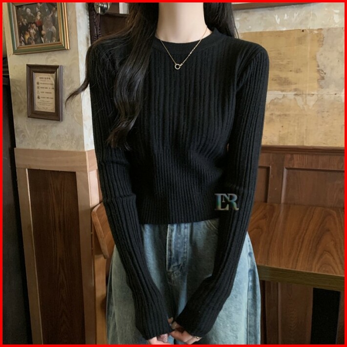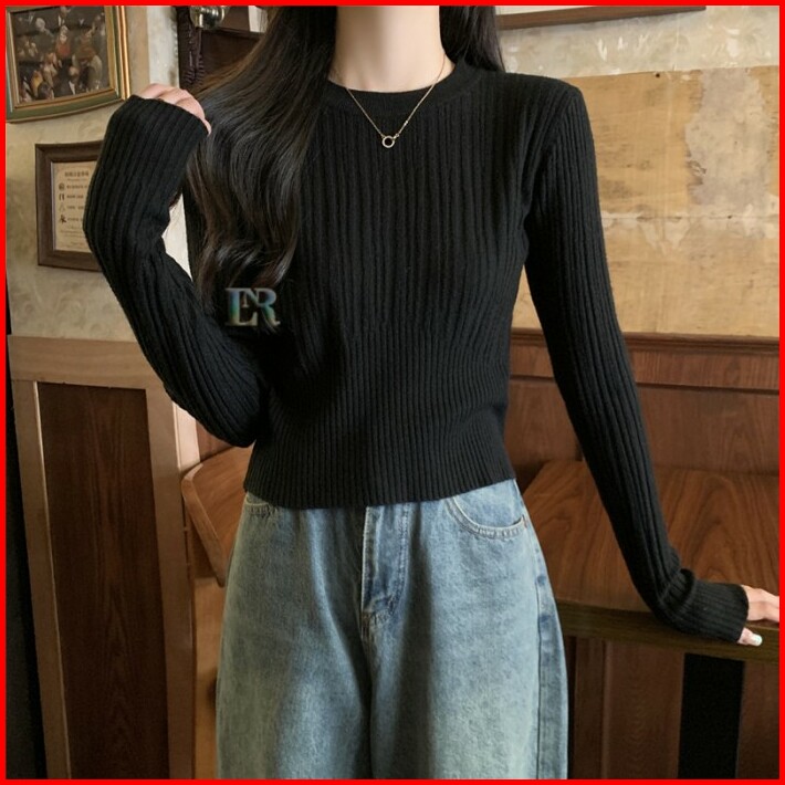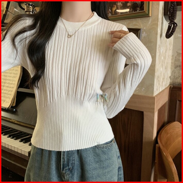 Lnr Shop Lokal Premium Atasan Lengan Panjang Sweater Salur Bahan Rajut Knit Premium Korean Style Long Sleeve Motif Polos