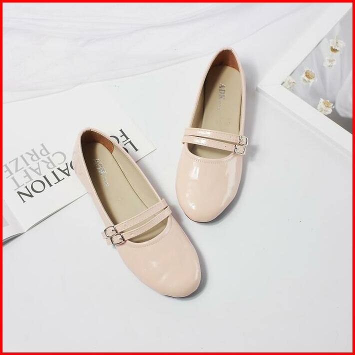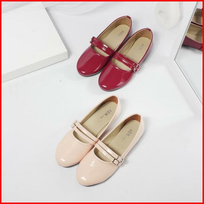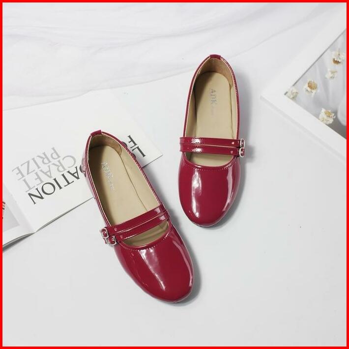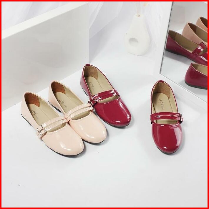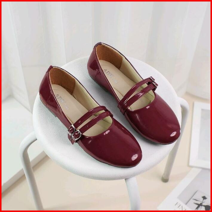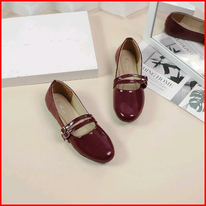 Adeka Gesper Kembar Twins Flatshoes Gloosy Burgundy Untuk Wanita Kerja