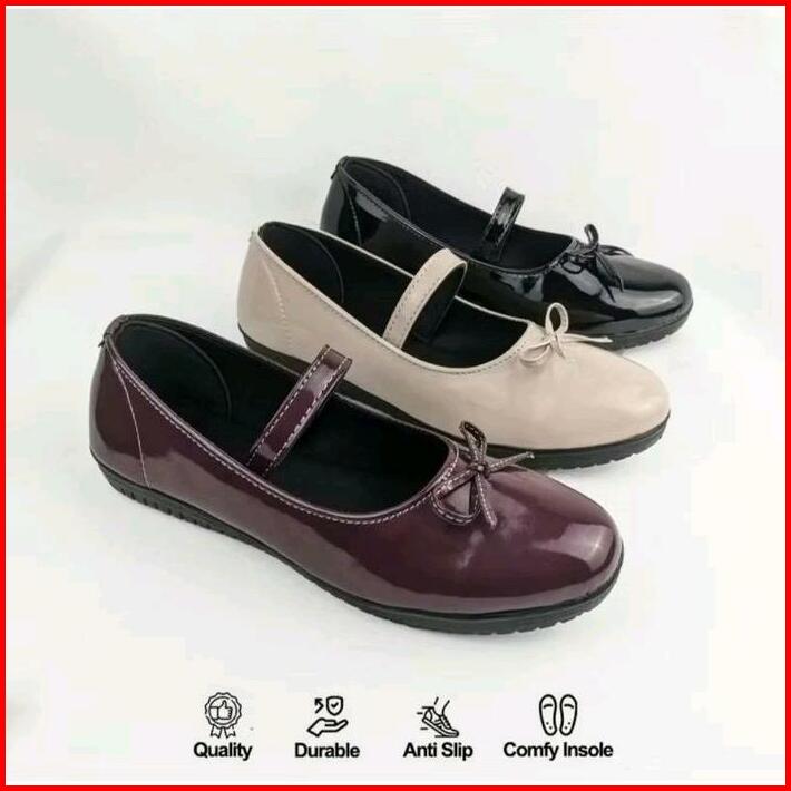 Sepatu Wanita Flatshoes Zavira Series Sepatu Wanita Kekinian Sepatu Balet Women Shoes Black Karet