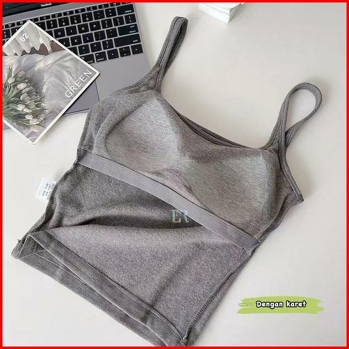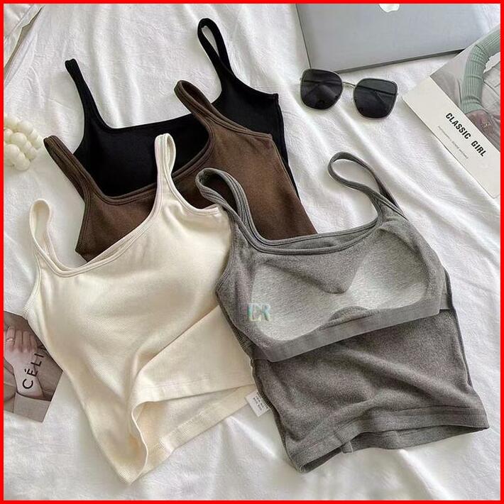 Lnr Shop Tanktop Bahan Cotton Dengan Cup Pad Busa Model Tali Kecil Seamless Bra Atasan Wanita Tanpa Lengan Ketek Square